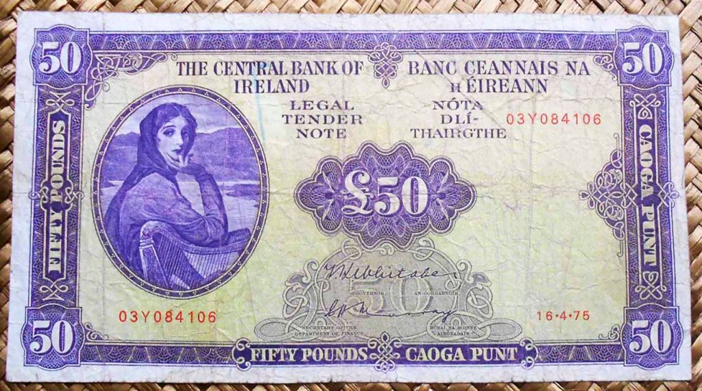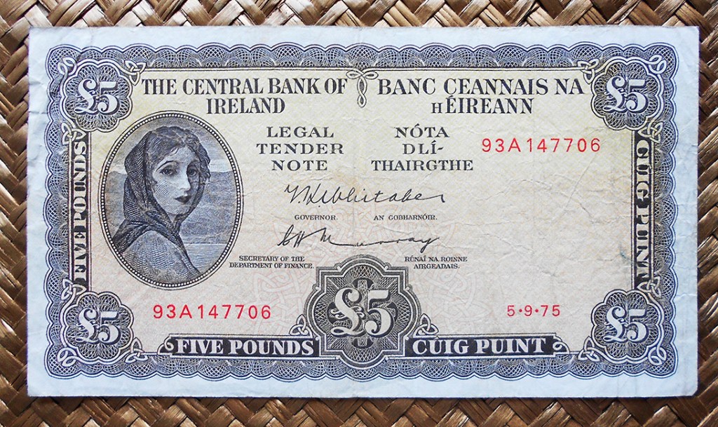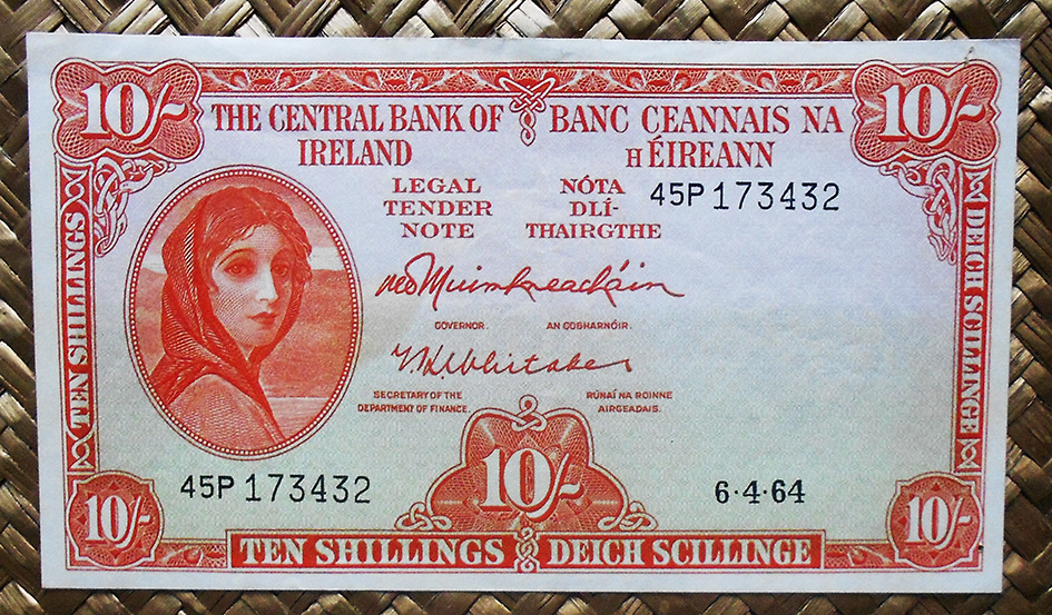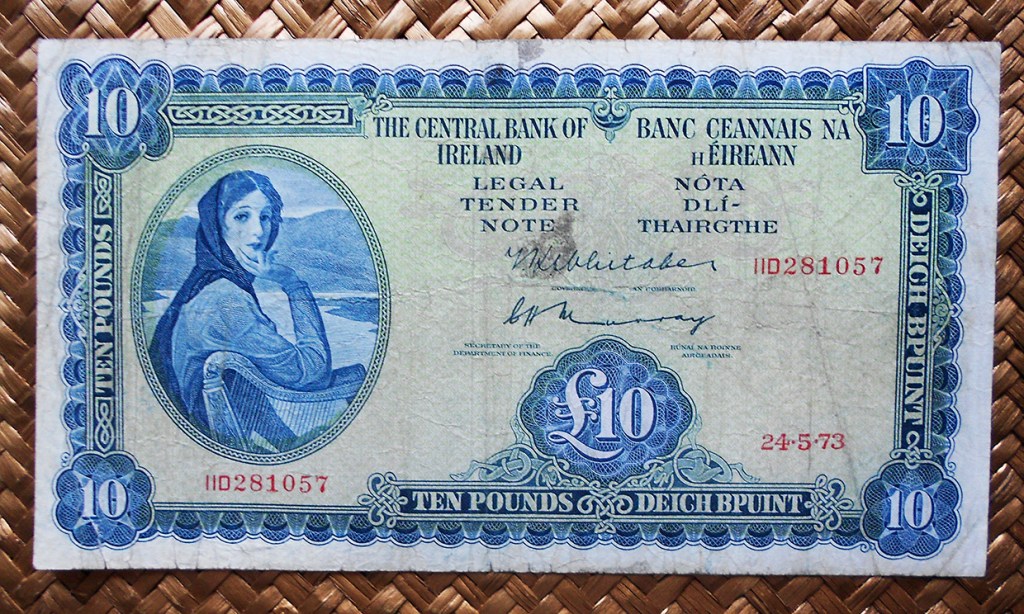 Esta vez nos desplazamos hasta Irlanda, tierra celta, vikinga, anglonormanda e irlandesa de facto a partir de 1922, año en que obtuvo la independencia del Imperio británico. Nos adentramos en ella a través de uno de sus más logrados billetarios, la serie que circularía entre 1928 y 1976 con un diseño común, dedicado a Lady Lavery.
