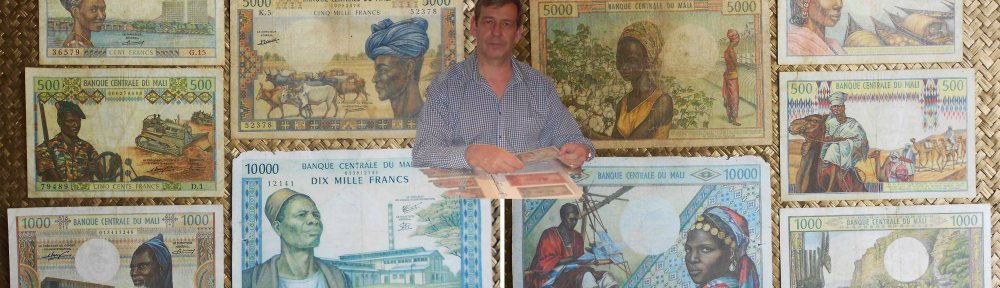 La serie de billetes que os muestro se corresponden con parte de los emitidos por el Banco Central de Mali entre 1970 y 1984; su moneda es el franco maliense y fueron los últimos que se editaron como moneda particular de Mali. A partir de entonces, notafílicamente hablando, pasaría a formar parte de los West African States, con un billetario igual para todos los estados, en el que la única distinción que nos indicaría que se han emitido para circular en Mali es que se marcarían con la letra D.