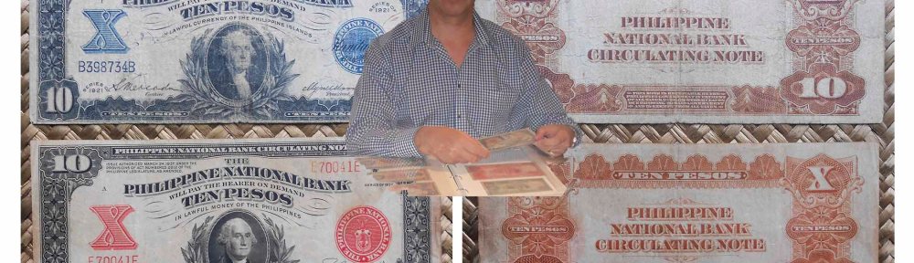 Vamos a contemplar dos ejemplares de 10 pesos emitidos por el Banco Nacional de Filipinas “Philippine National Bank” en 1921 y en 1937. A pesar de ser dos billetes muy semejantes y de idénticos grabados y motivos serigráficos, exponen unas peculiaridades que los distinguen perfectamente a simple vista.