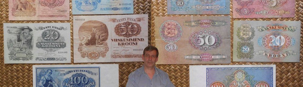 Contemplamos los billetes de 5 coronas de 1929, 10 coronas de 1937, 20 coronas de 1932, 50 coronas de 1929 y 100 coronas de 1935. Fueron impresos en la imprenta estatal de Tallin “Riigi Trükikoda” bajo diseño de Günther Reindorff.