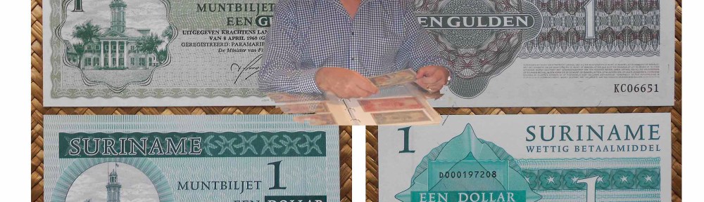 Notafílicamente hablando, se usaron los billetes de gulden (florines) como moneda colonial, inicialmente amparados en letras del Tesoro o “Zilverbon” que después pasarían a llamarse “Muntbiljet”, ya como moneda nacional y sin el auspicio de reserva en plata, hasta 2004. A partir de ese año su moneda pasaría a ser el dólar surinamés. La paridad fue de 1000 gulden = 1 dollar.