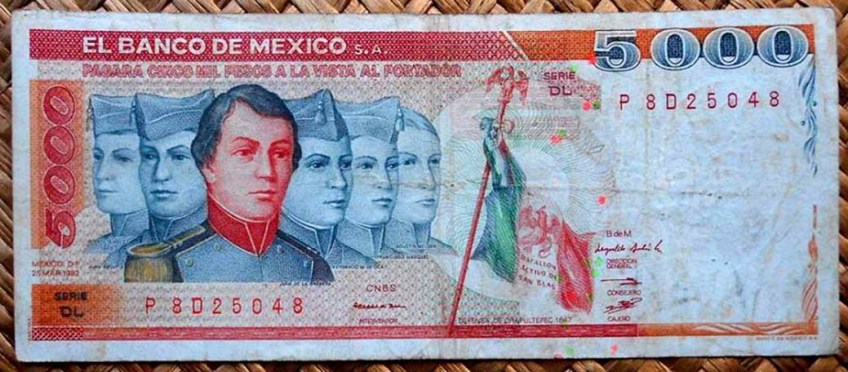 México 5000 pesos 1982 pk.77b (156x66mm) anverso Publicado el 30 diciembre, 2018 a 1039 × 456 en MÉXICO, Héroes Niños de CHAPULTEPEC en los 5.000 PESOS de los ’80 s.XX México 5000 pesos 1982 pk.77b (156x66mm) anverso Descubre más desde PASIÓN NOTAFÍLICA, BUSCAR ...VIAJAR! Suscríbete y recibe las últimas entradas en tu correo electrónico. Escribe tu correo electrónico… Suscribirse