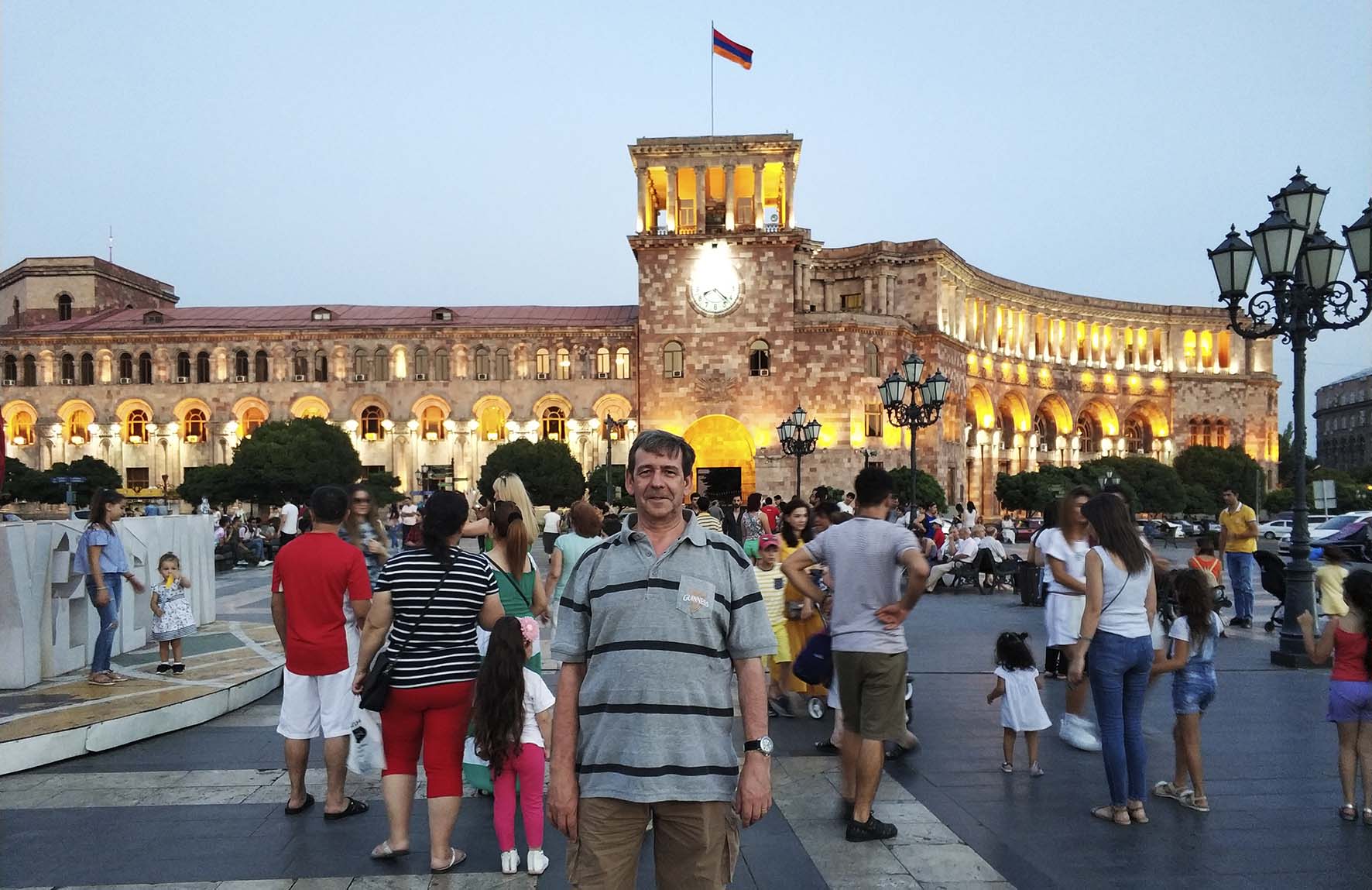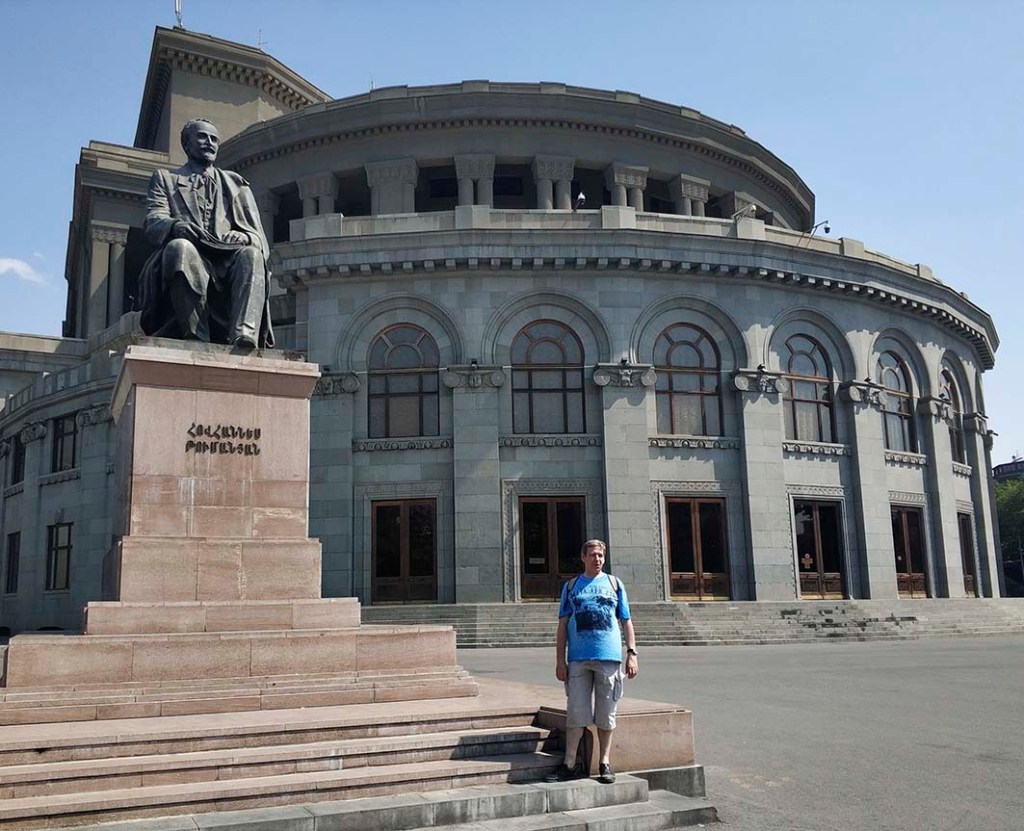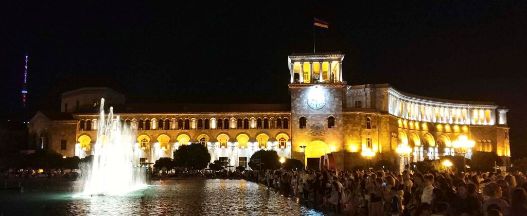 Desde «PaséporAllí» nos trasladamos hasta Yereván, capital de Armenia, a través de uno de sus edificios gubernamentales más emblemáticos. Vamos a contemplar el Edificio del Gobierno de Armenia, sede del Ministerio de Asuntos Exteriores, sito en su capital y circunvalando la plaza de la República. Completan la plaza el edificio central de Correos, la Galería Nacional y Museo de Historia armenia y el Hotel Marriot, como edificaciones relevantes a su alrededor.