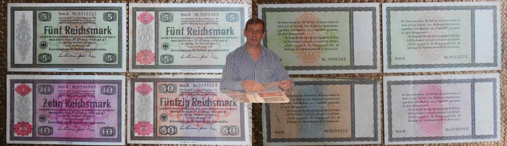 Coetáneamente al nombramiento de Adolf Hitler como canciller de Alemania, en 1933, verían la luz unos peculiares billetes pagarés que iban a formar parte de los fondos de conversión para la deuda externa alemana. Esta especie de certificados de deuda externa fueron emitidos por el Reichsbank, que en esa fecha aún era una institución independiente del gobierno del Tercer Reich. Estas notas se emitieron de 1933 a 1935 para refugiados predominantemente judíos, que recibían estos billetes como pago por las propiedades que les confiscaban.