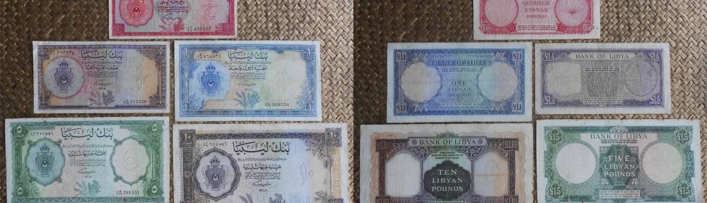 La serie de billetes en libras que contemplaremos son la primera emisión de 1963 bajo Ley 4 del 5.2.1963 de la monarquía libia del rey Idris I. Un año muy especial pues coincidiría con las primeras exportaciones del preciado oro negro, el petróleo, que había sido descubierto en su subsuelo apenas una década antes. Revisaremos los valores de ¼, ½, 1, 5 y 10 libras libias.