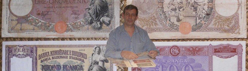 En reseñas anteriores comparamos, para este capítulo, los billetes de 20 frangas de Albania de 1939 y de 100 liras de la Italia fascista de 1935 (podéis repasarlo en https://billetesensuhistoria.wordpress.com/2017/11/07/frangas-de-albania-vs-liras-de-italia-en-la-wwii/).