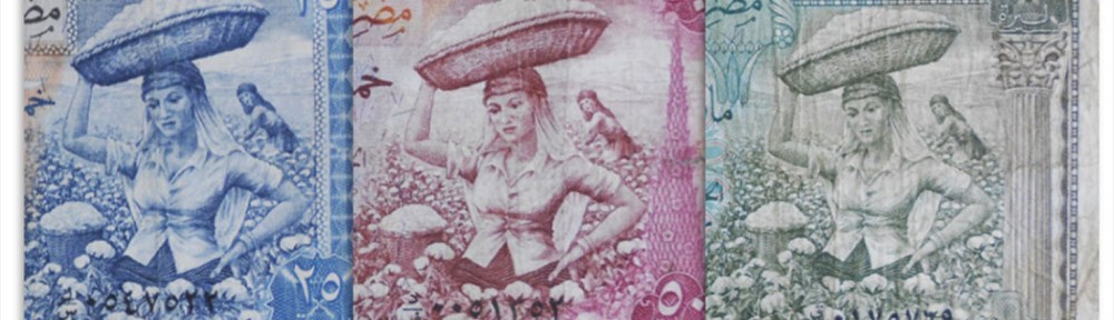 El billete de 50 libras de Siria de 1958 nos deleita en su anverso con la recolectora de algodón en una cromaticidad rosácea, púrpura y anaranjada.