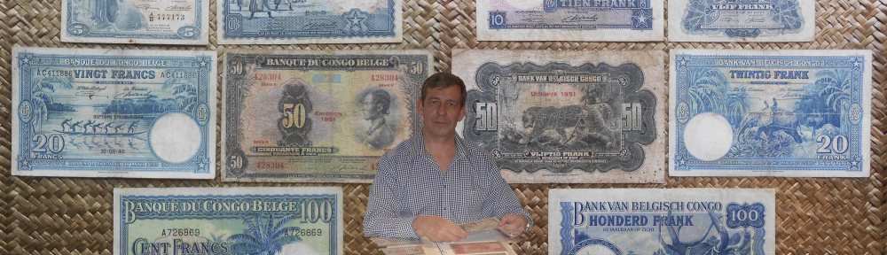 Vamos a contemplar los ejemplares del billetario del Banque du Congo Belge emitidos en la década de los ’40 del pasado siglo. Revisamos el billete de 5 francos de 1947, el de 10 francos de 1949, el de 20 francos de 1948, el de 50 francos de 1951, finalizando con el ejemplar de 100 francos de 1944. Todos los valores se editaron en tonalidades predominantemente azules por la empresa Waterlow & Sons Ltda. (5 fr., 10fr. y 100fr.) y por Thomas de la Rue & Co.Ltda. (20fr.), ambas de Londres, excepto el ejemplar de 50 francos que sería editado por la American Bank Note Company de Nueva York en tonos predominantes grisáceos con mezclas multicolor.