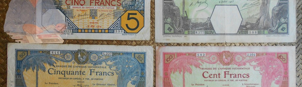 La serie de billetes que os presento comprenden los emitidos en Dakar, como capital de dichos territorios. Versiones similares fueron emitidas desde Conakri (Guinea francesa), Grand Bassam (Costa de Marfil), Porto Novo (Senegal), Sant Louis (Senegal) y Duala (Camerún).