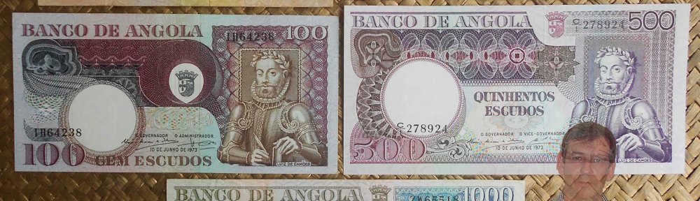 Contemplaremos su última serie de billetes emitidos para la colonia por el Banco de Angola en 1973. Revisaremos los valores de 20 escudos, 50 escudos, 100 escudos, 500 escudos y 1.000 escudos, dedicada al poeta portugués del s. XVI Luiz de Camöes.