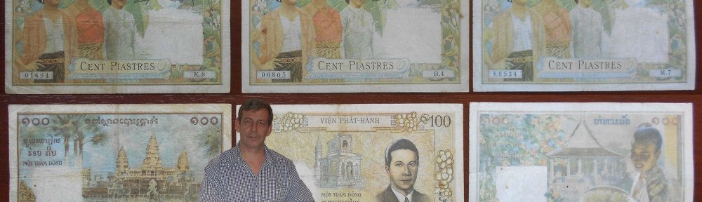 Compararemos las emisiones de 100 rupias (=100 riels) de Camboya de 1954, de 100 rupias (=100 dong) de Vietnam de 1954 y de 100 rupias (=100 kip) de Laos de 1954.