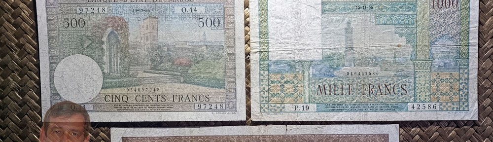 Desde “Miscelánea” volvemos a Marruecos, país del norte de África en la región continental conocida como el Magreb. Vamos a revisar los últimos billetes emitidos por el colonizador francés a mediados del siglo XX. La moneda oficial en la etapa colonial fue el franco. Después de esta serie veríamos un billetario en francos resellado con el valor en dírhams, que coexistieron hasta 1959. Finalmente se adoptó el dírham como única moneda oficial.