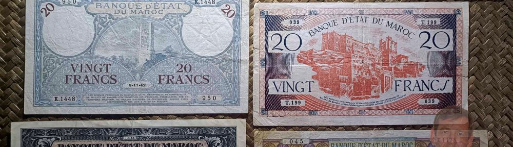 Desde “Miscelánea” y «PaséporAllí» bajamos nuevamente a Marruecos, país norteafricano que ocupa el centro occidental de la región conocida como el Magreb. Esta vez revisaremos, de su etapa colonial bajo Protectorado francés, los billetes que emitieron en el primer lustro de la década de los años ’40 del pasado siglo. Años difíciles para el colonizador, ya que había sido ocupado por las tropas alemanas durante la Segunda Guerra Mundial. Consecuencia de ello podremos contrastar emisiones encargadas a imprentas ajenas al Banque de France coexistiendo con emisiones de este último.