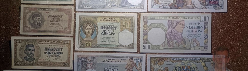 Vamos a revisar las distintas emisiones de billetario destinadas al territorio serbio durante el periodo en que estuvo bajo el gobierno títere del general Milan Nedic, entre 1941 y 1944, conocidas como “dinero de Nedic”. Veremos los ejemplares de Serbia (ocupación alemana WWII) de 10, 20, 50, 100, 500 y 1.000 dinares de 1941, de 50, 500 y 1.000 dinares de 1942 y de 100 dinares de 1943. Los valores mayores fueron diseños de clara inspiración francesa, tanto en los motivos para sus grabados como en el uso del multicolor en sus impresiones. En los valores pequeños los diseños son más sobrios, austeros en coloración, casi monocromática, y con motivos de personajes históricos y de heráldica.