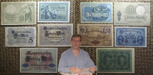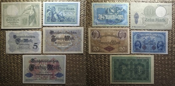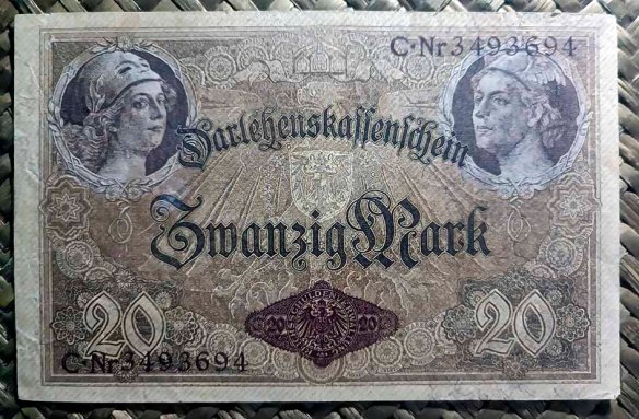 De modo que en las dos primeras décadas del s.XX coexistirían billetes de bancos privados y billetes del Estado (Reichsbanknoten),  junto a billetes del Tesoro del Reich (Reichskassenscheine) y billetes/vales certificados de préstamo (Darlehenskassenscheine). Tras la Primera Guerra Mundial el sistema monetario entró en un caos creciente hasta colapsar completamente en medio de una inflación galopante. Paralelamente aparecerían las emisiones territoriales de billetes de emergencia o Notgeld.