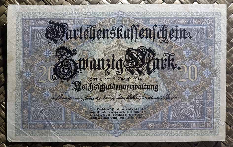Alemania 20 marcos 1914 -Darlehenskassen (140x88mm) pk.48b anverso