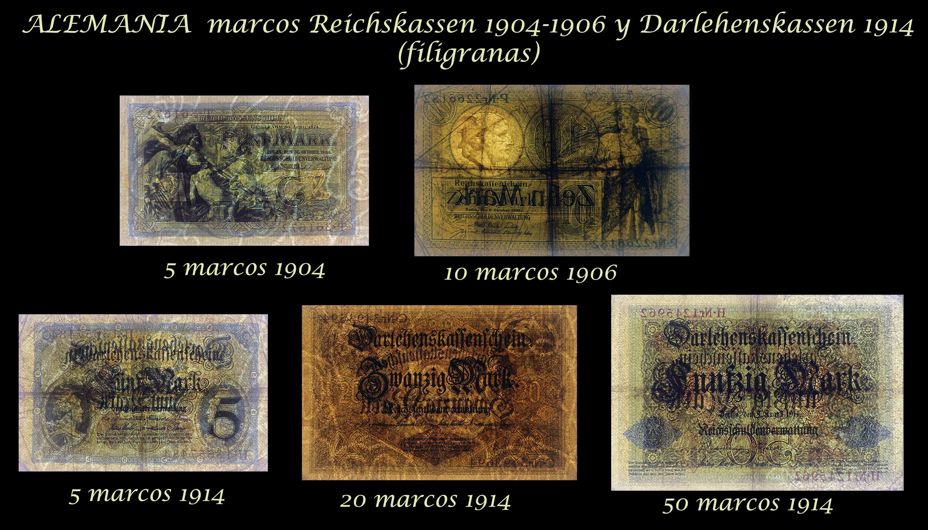 Alemania series marcos Reichskassen 1904-06 y Darlehenskassen 1914 anversos-reversos