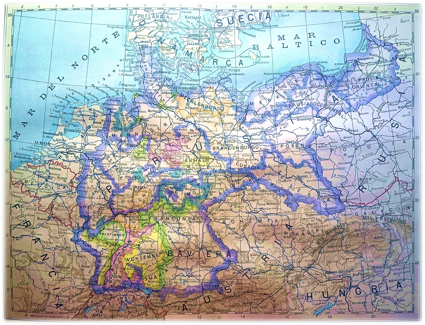 Mapa de Alemania en los inicios del siglo XX (Atlas Universal Paluzie -Barcelona, 1903)