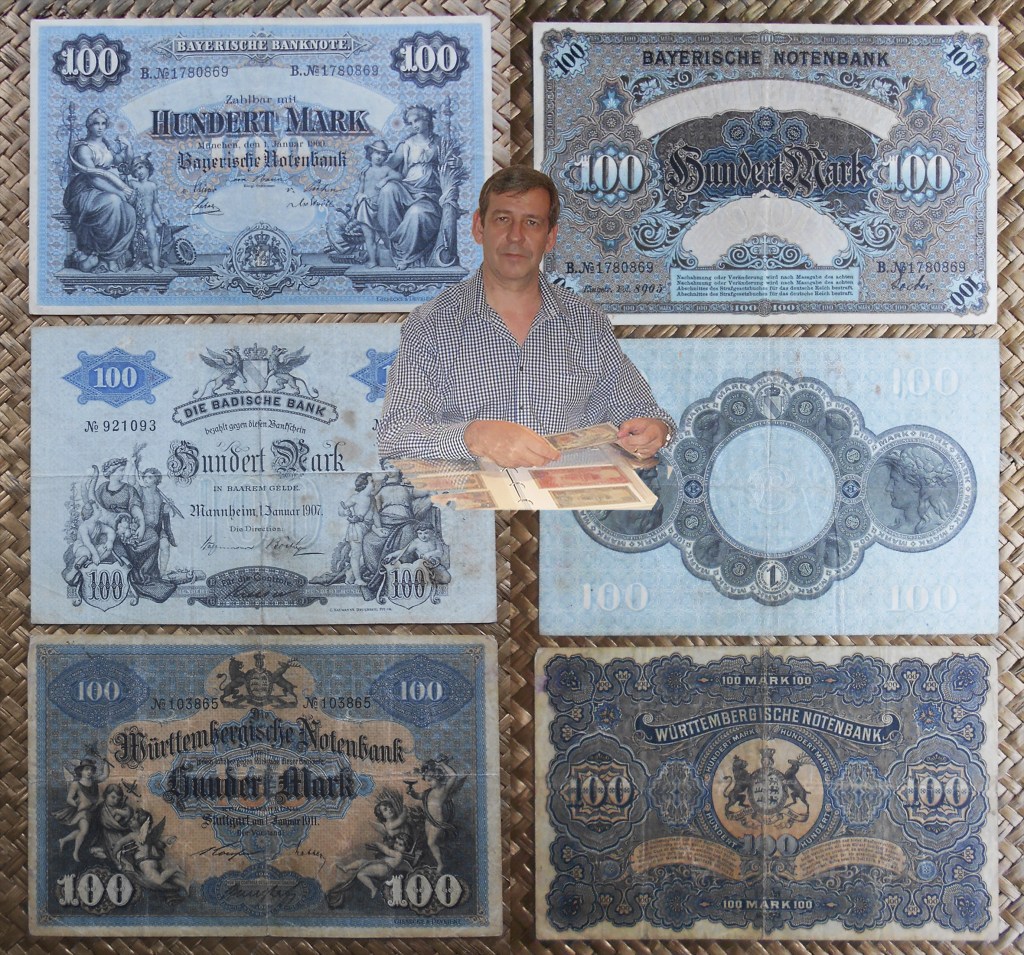 ALEMANIA, Alegorías en los 100 MARCOS de inicios del s.XX de Bancos regionales.