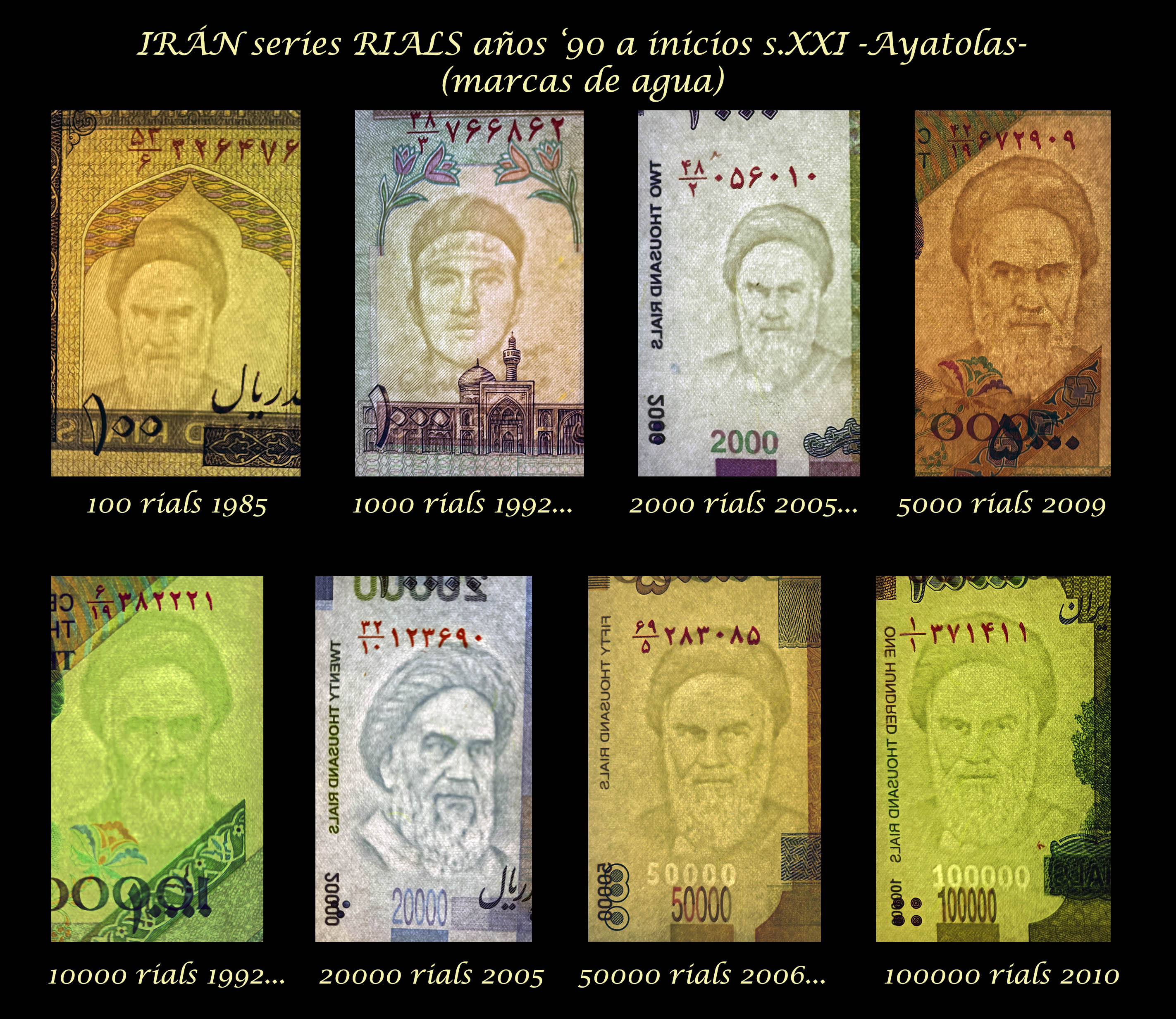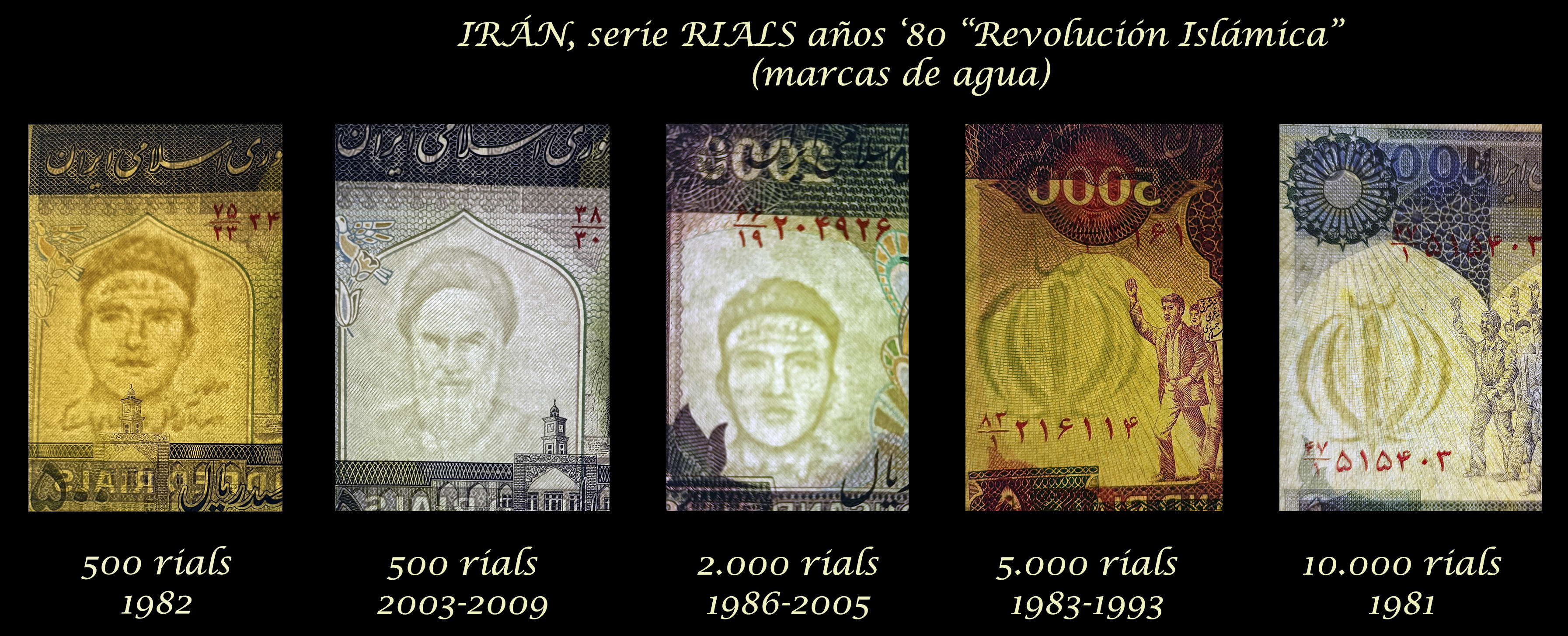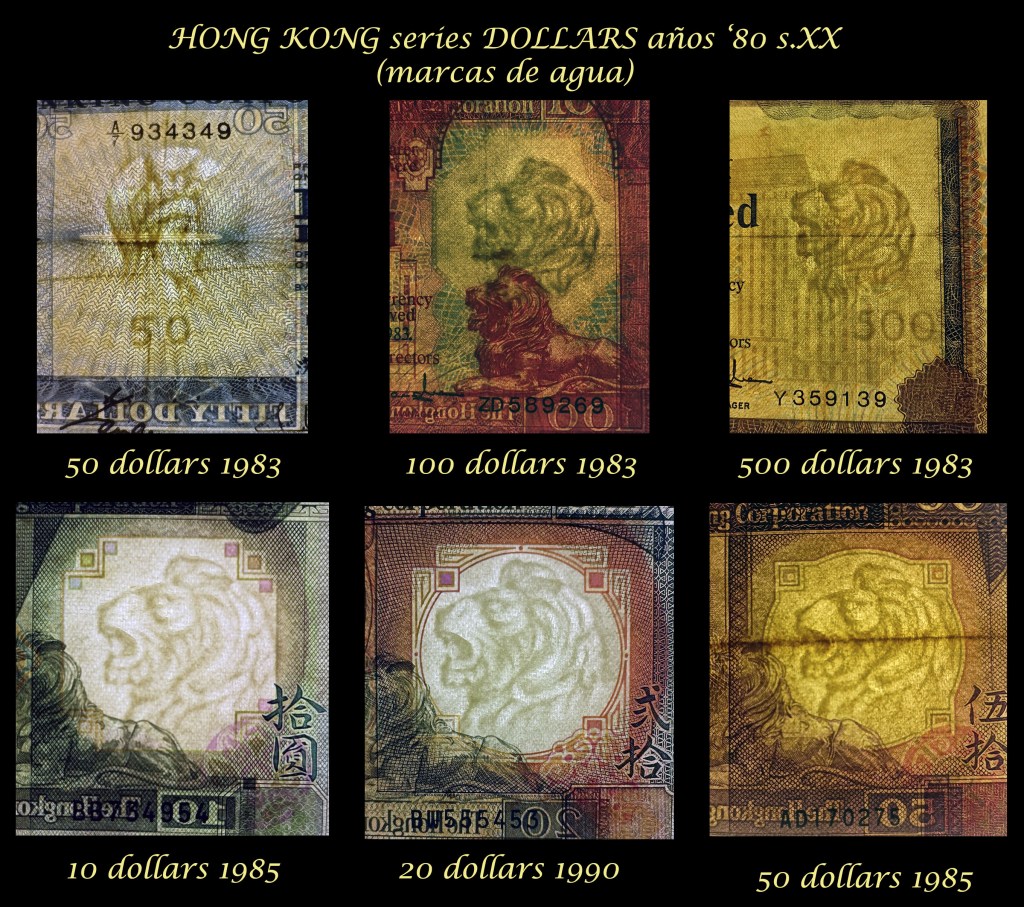 No podía faltar un repaso a esas muestras paquidérmicas que vienen escondidas, bien como filigranas o como marcas de agua, pero que se rinden a una buena iluminación al trasluz. No son tan frecuentes como el grabado directo en los ejemplares pero hay países que lo tomaron como marca de seguridad en sus billetarios.