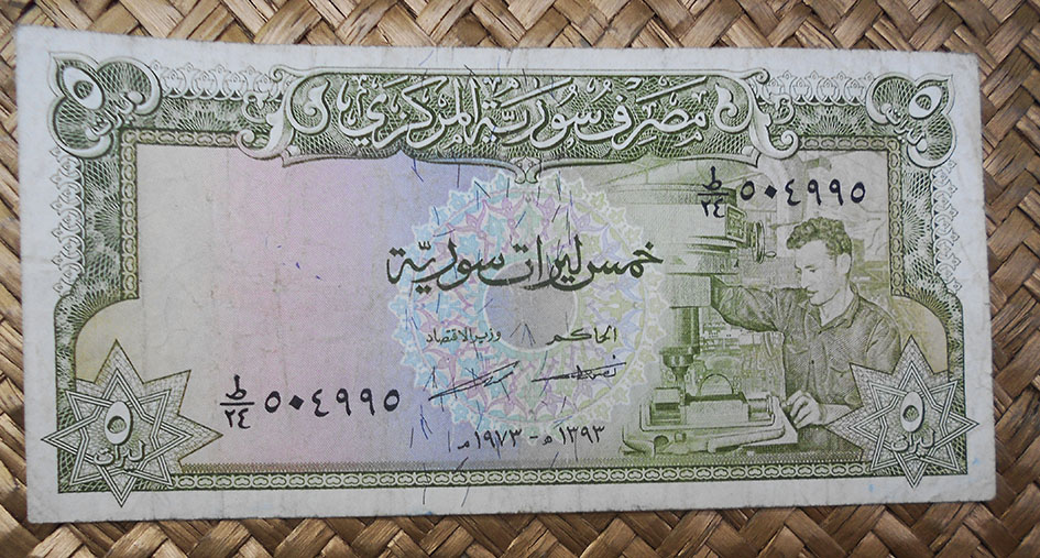 El billete de 5 libras de Siria de 1973 nos ofrece en su reverso una vista lateral de la entrada fortificada a la ciudadela, las dos torres, el puente, la escalinata y el foso. En su anverso, la imagen de un obrero de la industria en su banco de trabajo.