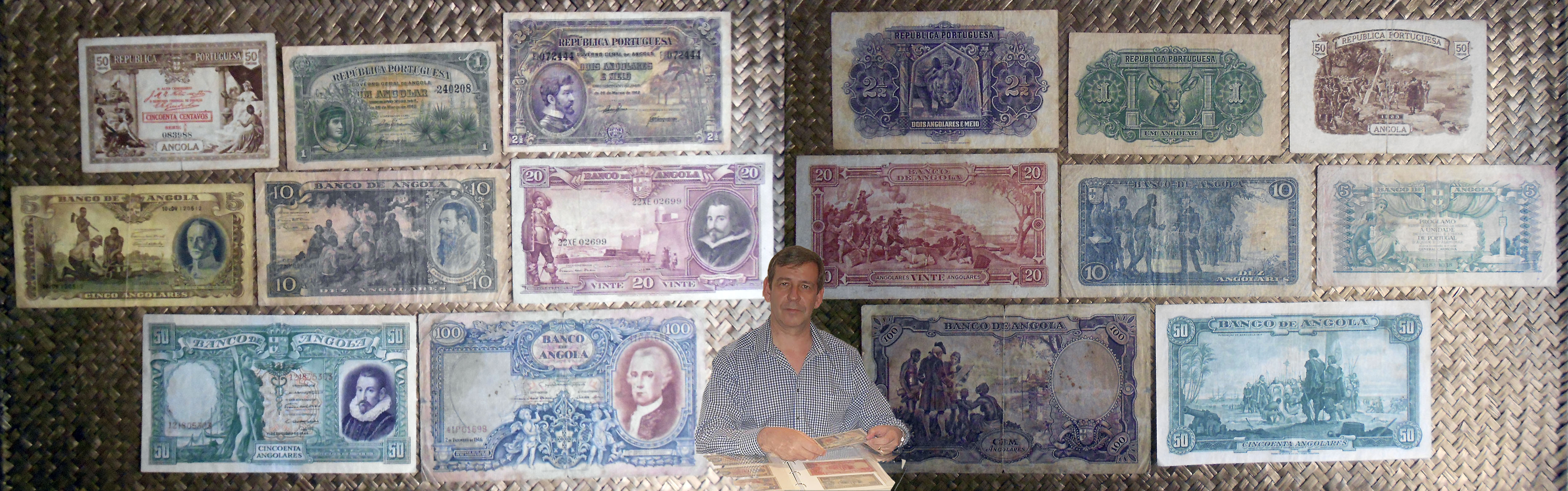 Vamos a revisar la serie de angolares del Banco de Angola de los años ’40 del pasado siglo y los 50 centavosdeescudo de Angola-República Portuguesa de 1923. Contemplaremos los billetes de 50 céntimos de 1923, 1 y 2 ½ angolares de 1942, 5 angolares de 1947, 10 angolares de 1946, 20 y 50 angolares de 1944 y 100 angolares de 1946. La Angola reflejada en esta histórica serie es el territorio que mayoritariamente surtía de esclavos a las plantaciones brasileñas de caña de azúcar. Tanto Angola como Brasil en los s. XVI, s. XVII y s. XVIII estaban gobernadas por los lusos.