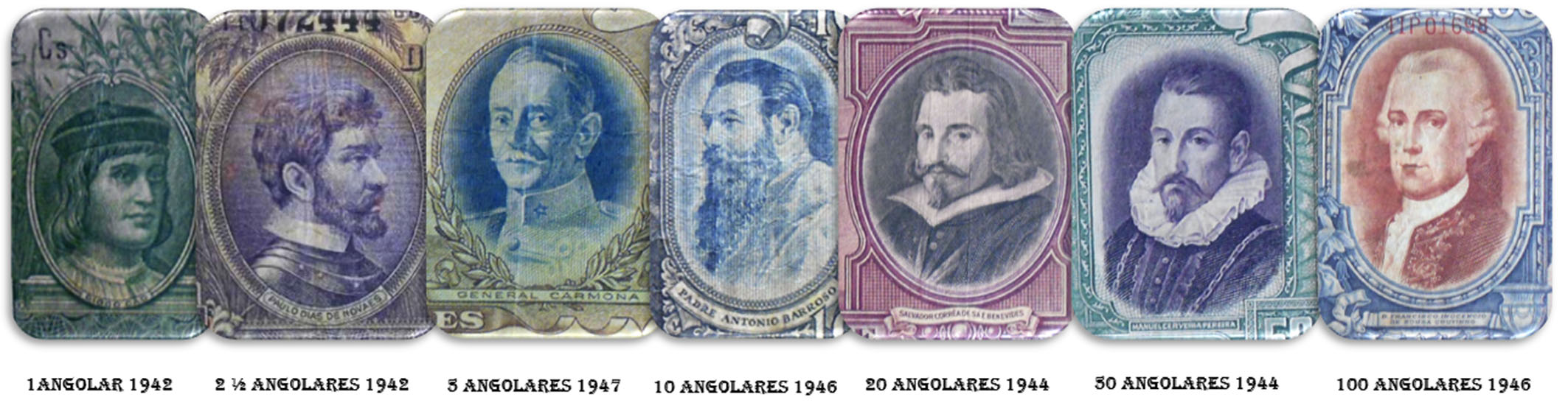 Ilustres portugueses para el billetario de Angola Portuguesa años ’40 s.XX