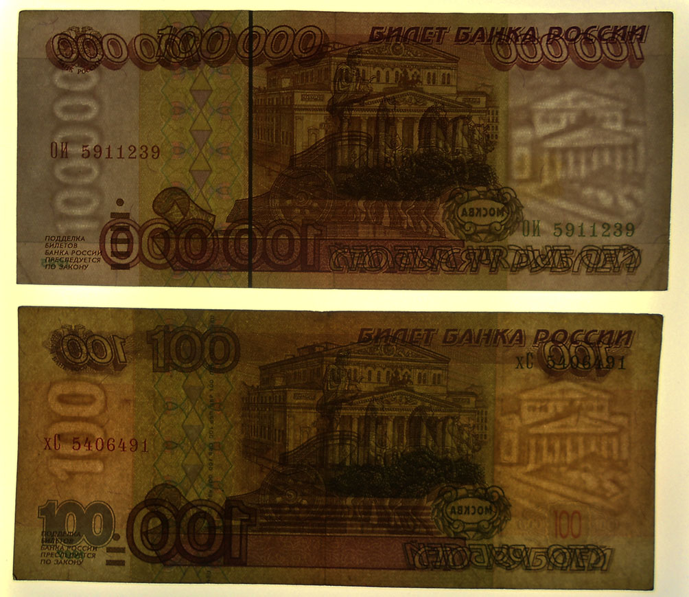 Cromaticidad predominante en tonos amarillos, marrones, rosáceos y verdes. Leyendas en francés, en letras moradas, con las identidades de los Bancos y el valor de cada ejemplar, arriba y al pie respectivamente. Sobre el ornamento central las firmas de tres validadores en color negro. Números de serie en tipografía negra divididos en las cuatro esquinas y en el centro superior.