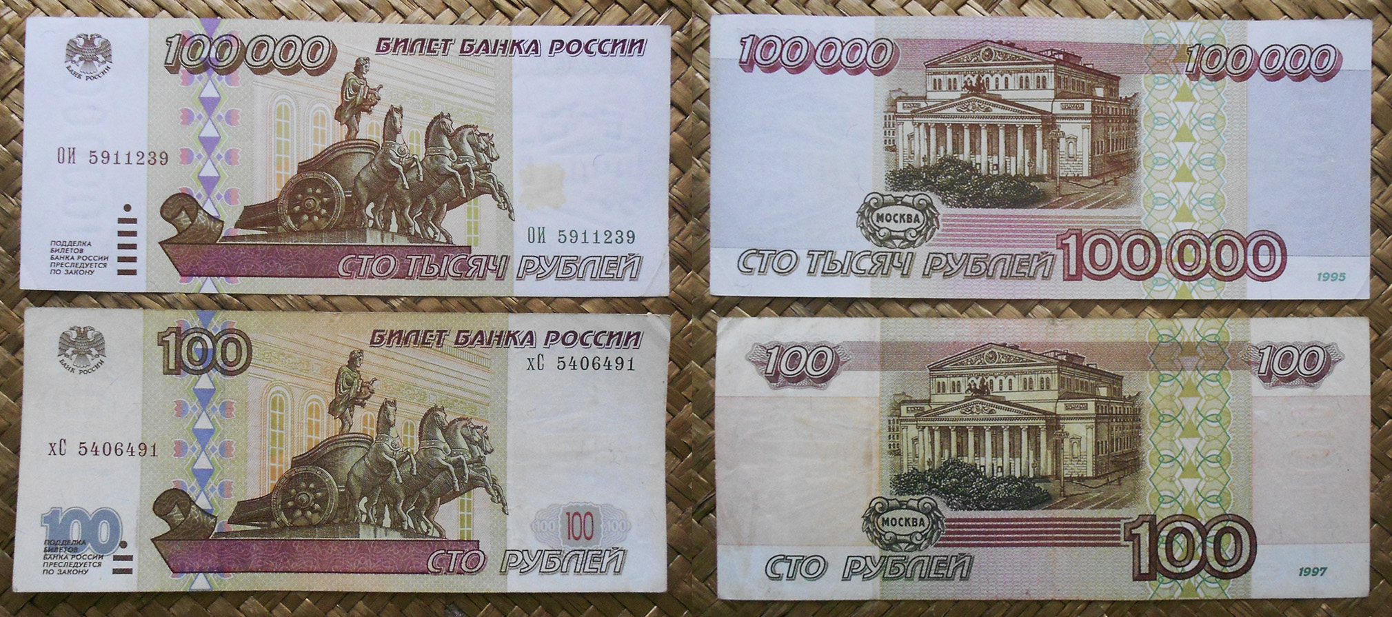Cromaticidad predominante en tonos amarillos, marrones, rosáceos y verdes. Leyendas en francés, en letras moradas, con las identidades de los Bancos y el valor de cada ejemplar, arriba y al pie respectivamente. Sobre el ornamento central las firmas de tres validadores en color negro. Números de serie en tipografía negra divididos en las cuatro esquinas y en el centro superior.