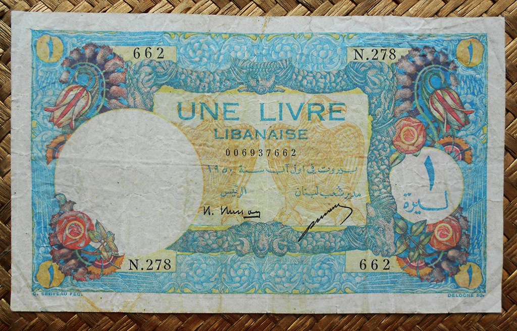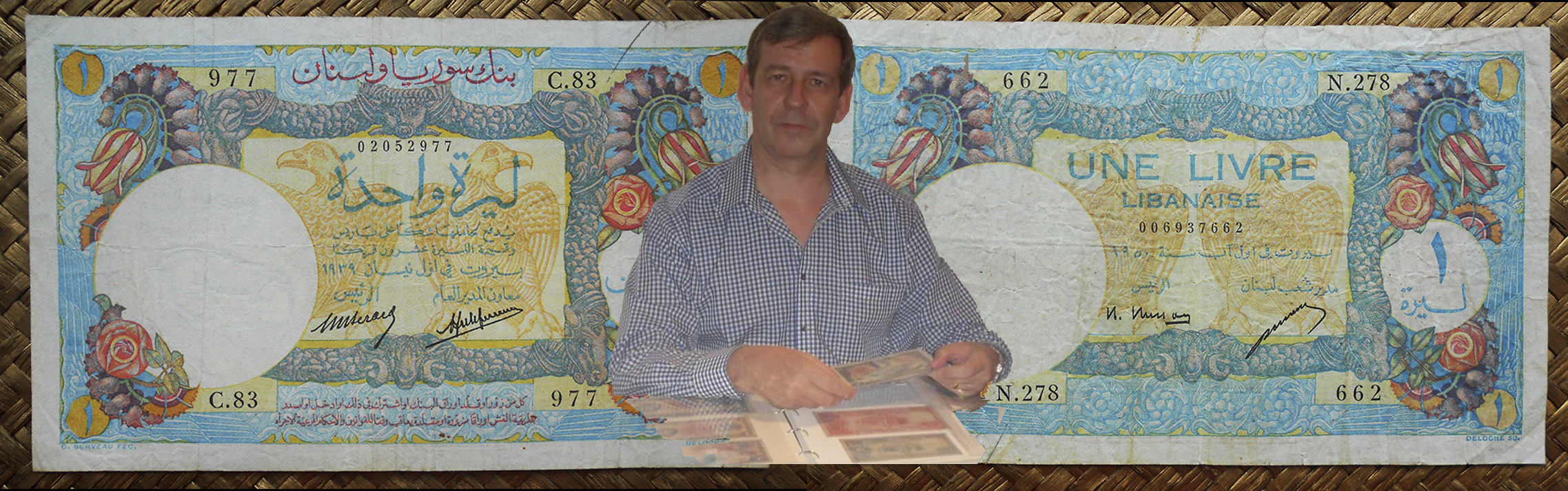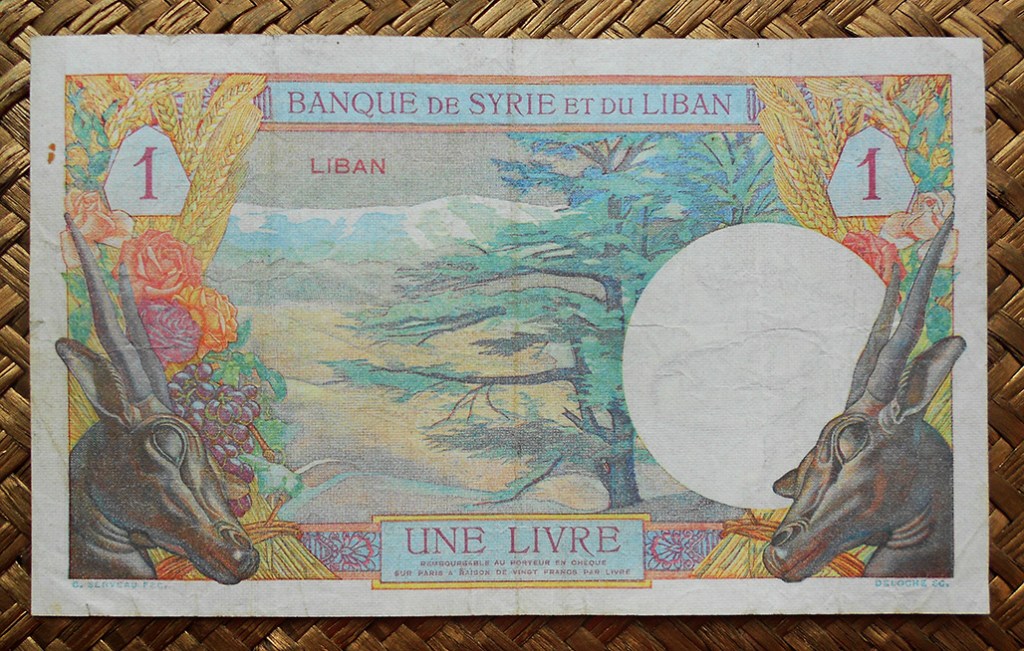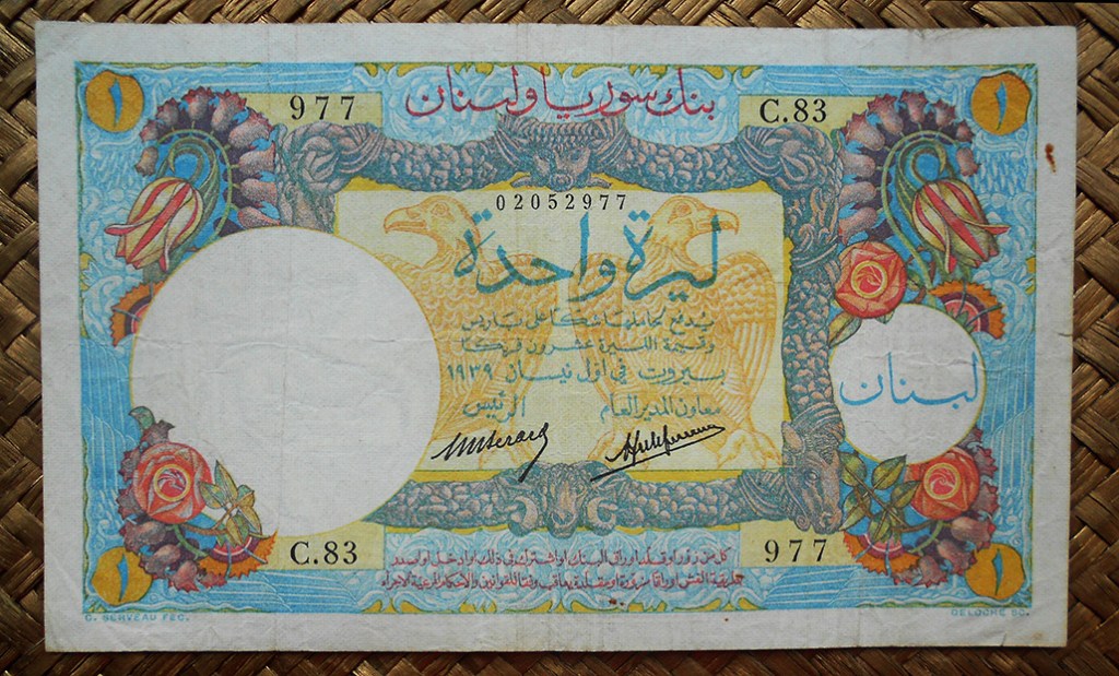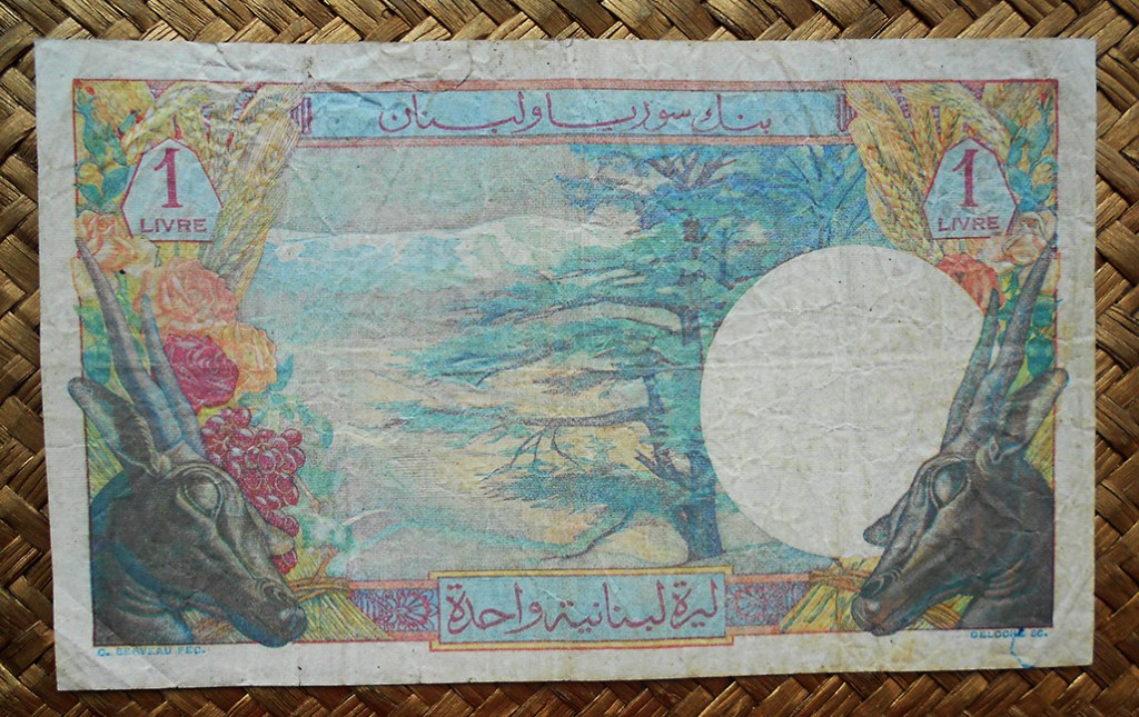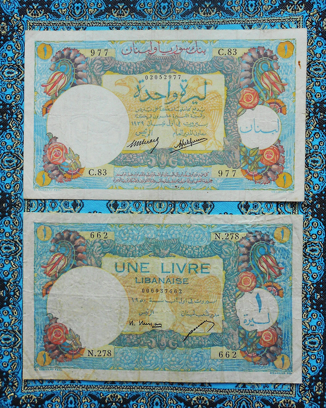 Vamos a contemplar dos billetes de 1 libra del Líbano de mediados del s.XX. La comparativa notafílica nos lleva hasta dos joyas del billetario libanés colonial y del billetario libanés independiente.