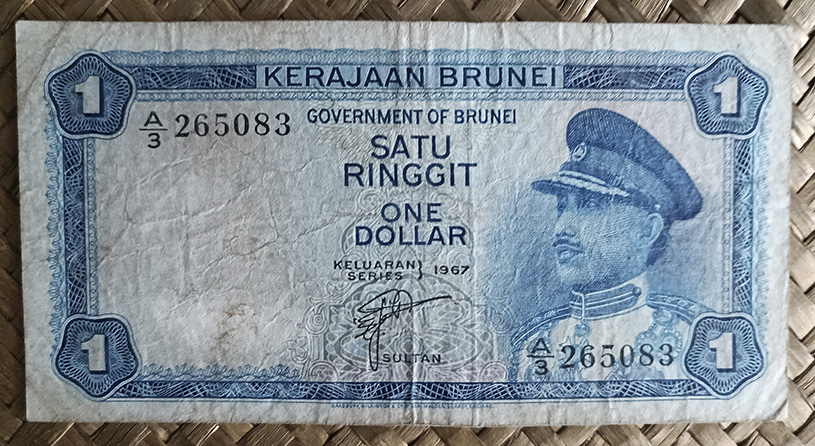 Omar Ali Saifuddien III (Omar Ali Saifuddien Sa’adul Khairi Waddien III; 1914-1986) gobernaría como sultán de Brunei entre 1950 y 1967, año en que abdicó en su hijo Muda Hassanal Bolkiah. En la década de los ’80, ya con su hijo como sultán, fue Ministro de Defensa hasta su fallecimiento en 1986. Se le reconoce como el arquitecto del Brunei moderno y padre de la independencia. Solo aparecería en este billetario de 1967, precisamente el año de su abdicación. Las ediciones posteriores rendirán culto a su hijo, que aparecerá presidiendo los billetarios bruneanos del resto del siglo XX.