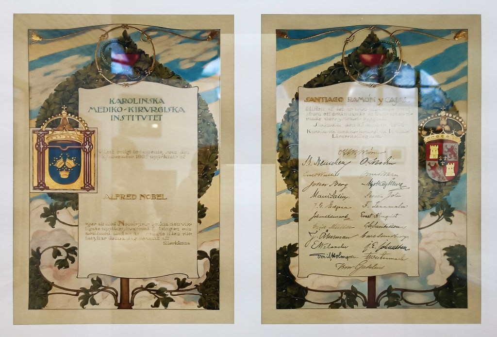 …Y en 1906 llegaría su reconocimiento más memorable, el Real Instituto Carolino de Estocolmo le había otorgado el Premio Nobel de Medicina y Fisiología por su doctrina neuronal y los meritorios trabajos sobre la estructura del sistema nervioso, honor que compartiría con el investigador italiano Camillo Golgi, inventor del método homónimo de tinción que Cajal usaría en sus primeros ensayos.
