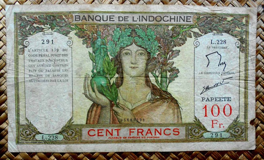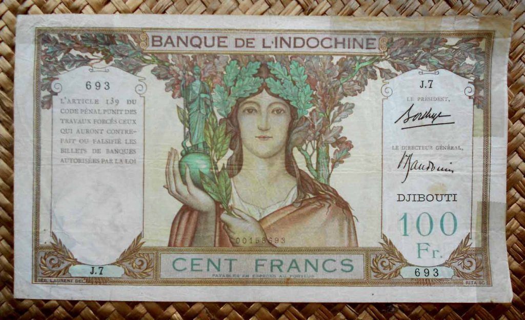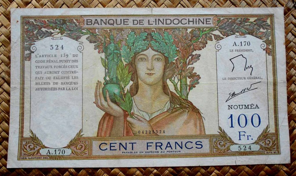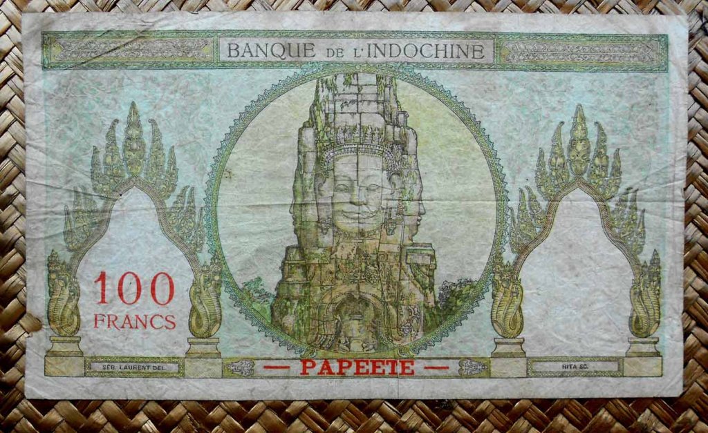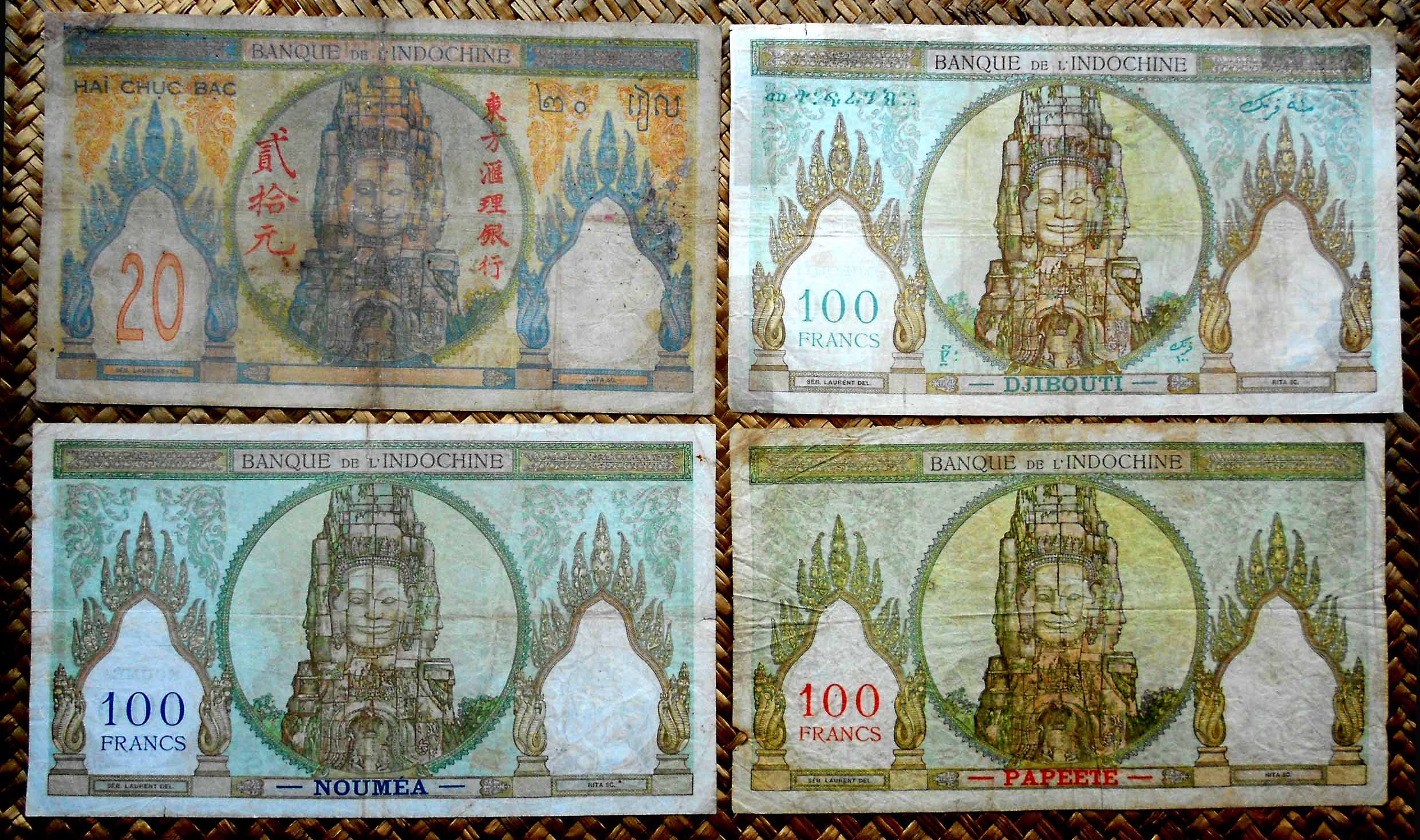 El mismo año en que las tropas coloniales dejaban la Conchinchina, último vestigio francés del sureste asiático, vieron la luz unos artísticos billetes de 100 rupias de anverso común y reverso distinto según el territorio al que iba destinado.