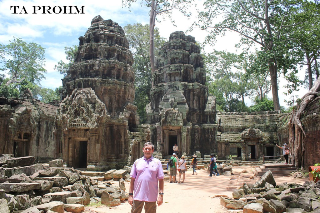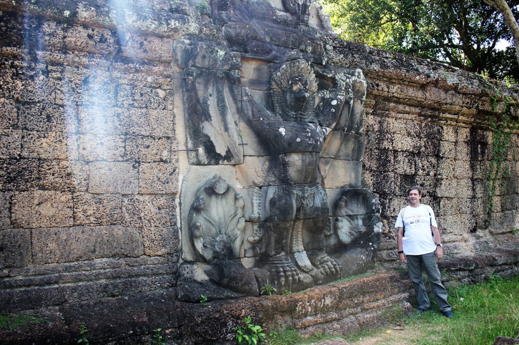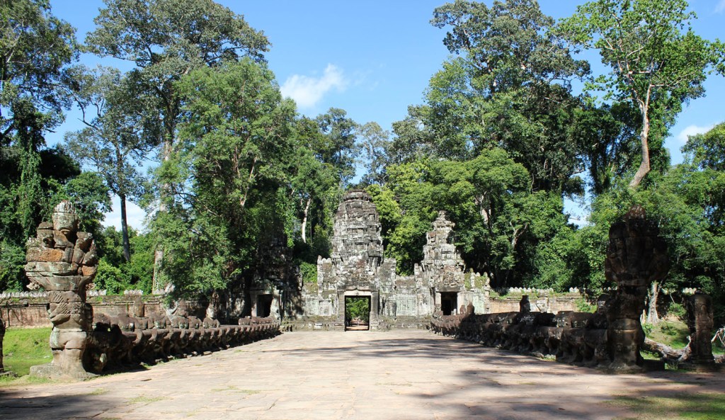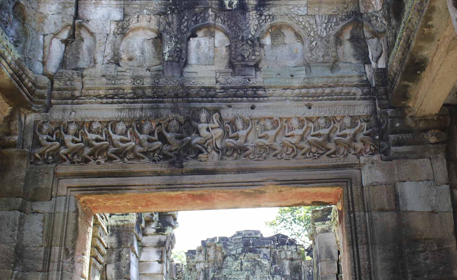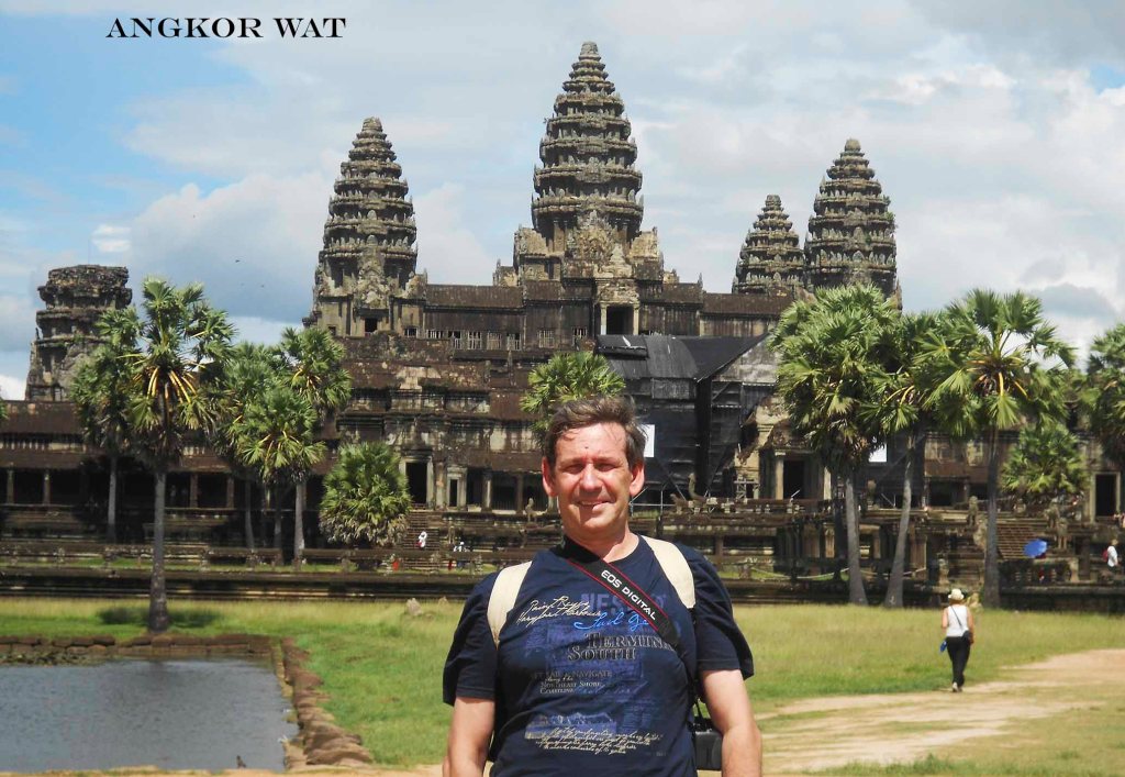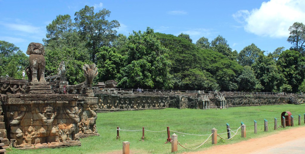 Su recinto ocupa cerca de 1,6 km2 y está rodeado de un muro en forma cuadrada. Vemos en la composición las tres torres o “gopuras” en el pórtico o entrada principal.