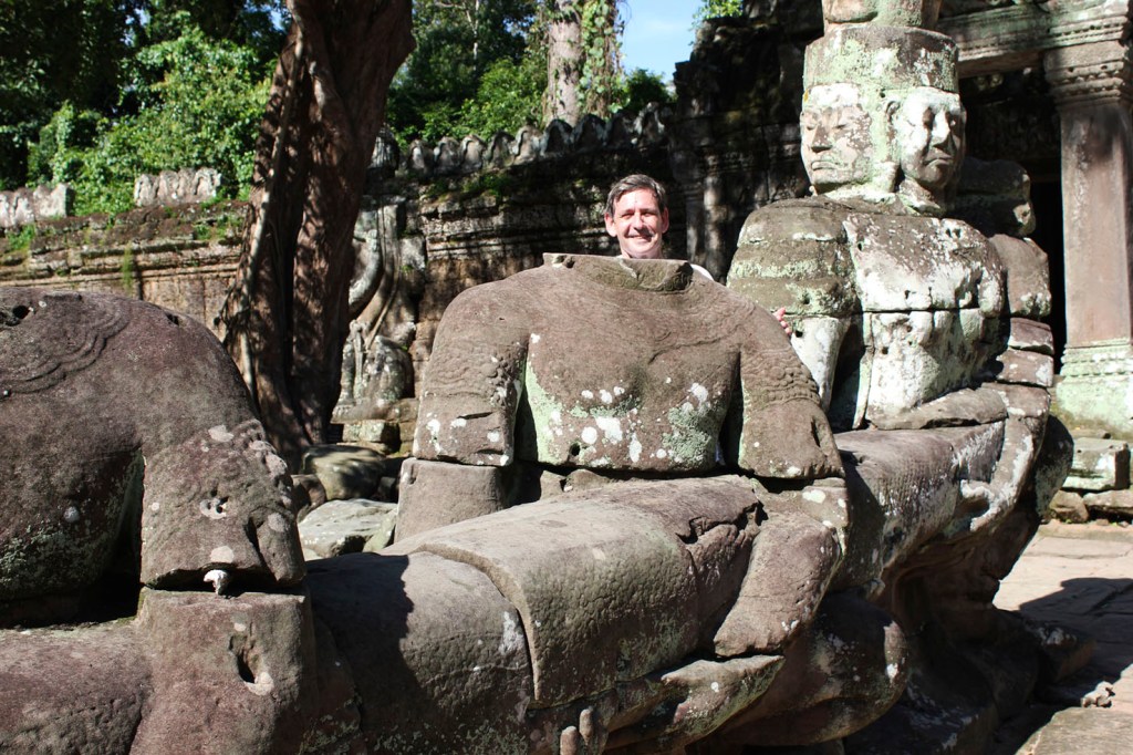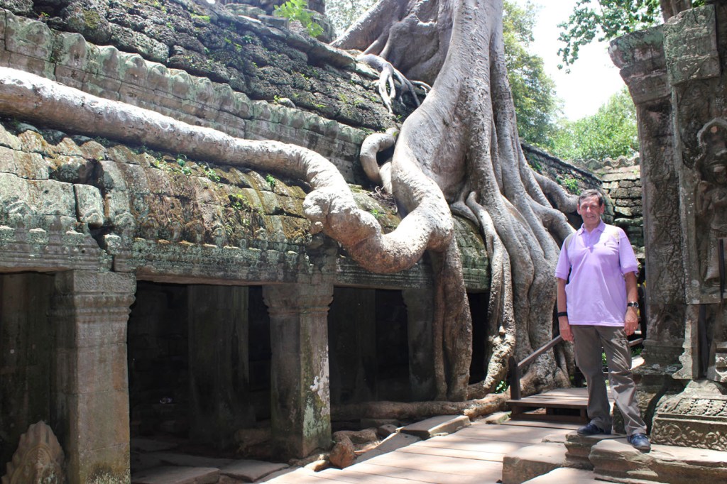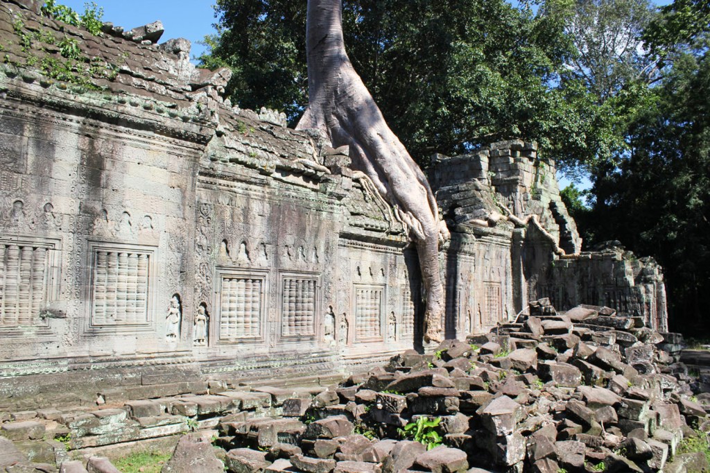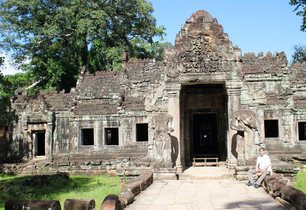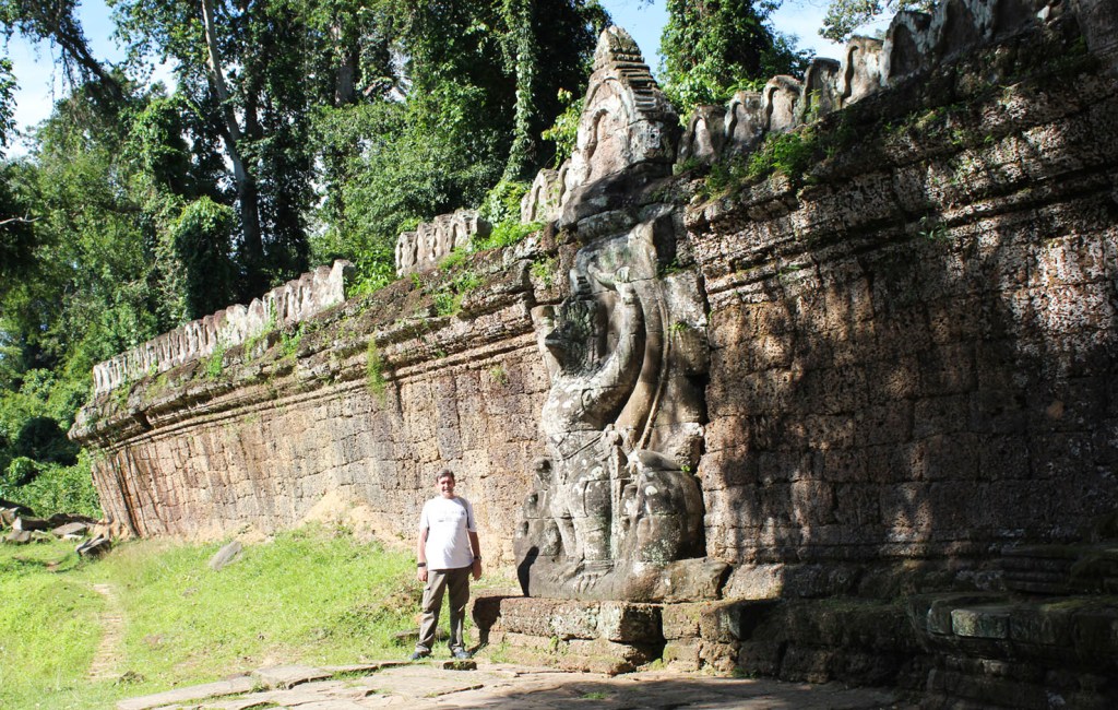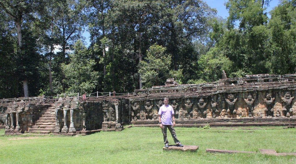 Su recinto ocupa cerca de 1,6 km2 y está rodeado de un muro en forma cuadrada. Vemos en la composición las tres torres o “gopuras” en el pórtico o entrada principal.