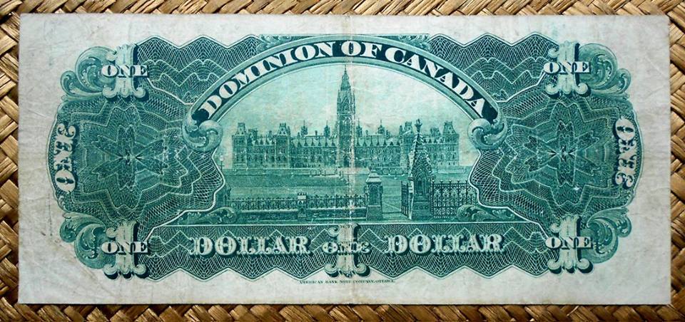 El billete de 1 dólar de Canadá de 1954 (edición 1961-72) nos muestra en su anverso a Isabel II con el retrato modificado. En su reverso vemos praderas del oeste canadiense. De color predominante verde, lleva las firmas de J.R. Beattie y L. Rasminsky. Fue impreso por la BABNC (Bristish American Bank Note Company Ltd.) de Ottawa.