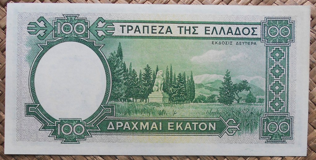 El billete de 100 dracmas de Grecia de 1939 no circuló. Solo sirvieron de billetario fiduciario griego los ejemplares resellados con el valor de 1.000 dracmas, aunque fue efímera su circulación, ya que fueron desmonetizados unas semanas después de ser validados.