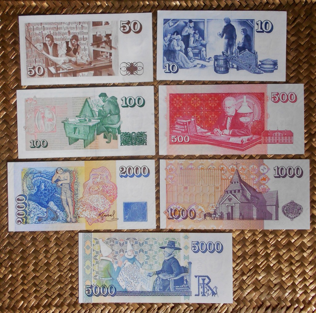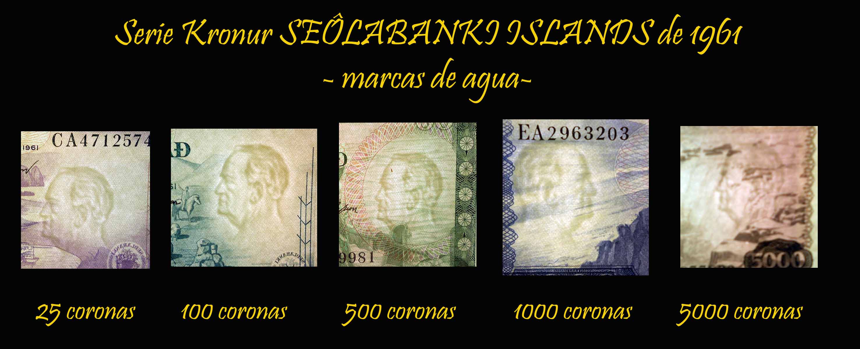 Solo los ejemplares de 10kn, 25kn y 50kn(1964) nos ofrecen como medida de seguridad el número de serie duplicado y una letra de serie diferente a la tipografiada al anverso, pero ambas solo perceptibles al trasluz ultravioleta.
