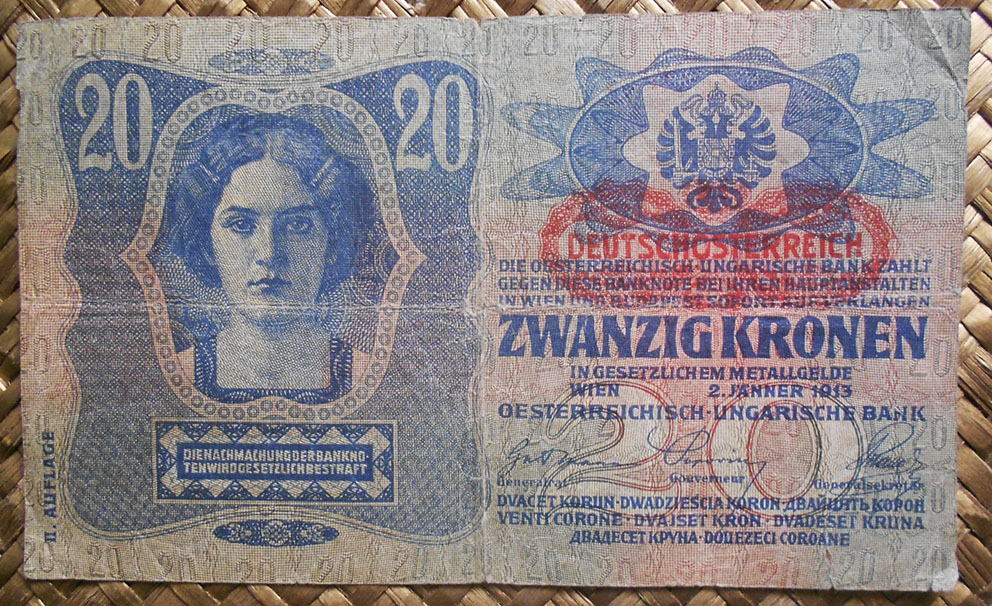 El ejemplar de 20 coronas de Checoslovaquia de 1970 fue impreso en cromaticidad predominante azul para grabados y fondos y en tonos verdes, rojos y violetas en composiciones de guilloches. Textos en checo y número de serie, en color rojo, solo en el reverso. Este billete de 20 coronas rompe completamente con su diseño el típico billete checoslovaco hasta el momento. Su composición cubre completamente la superficie disponible, dejándolo sin márgenes blancos ni marco exterior. Es un diseño de Karel Hruska grabado por Jan Mrácek.
