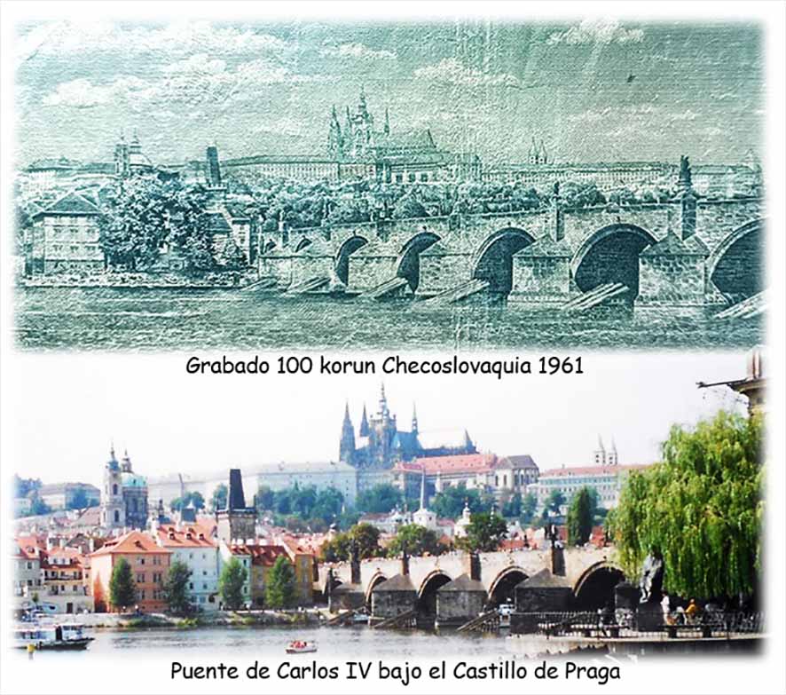 El castillo de Praga es una construcción del s. XIV, mide 500m de largo y 10 de calzada, descansa sobre 16 arcos y su tablero está flanqueado por 30 estatuas de estilo barroco que representan a santos patronos del s.XVII.