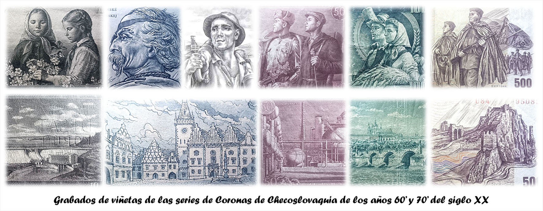 Fueron impresos por la Státní Tiskárna Cenin de Praga. Recoge parte del billetario de esta época socialista, y como tal, nos presenta los símbolos, mitos y representaciones más típicas de ella.