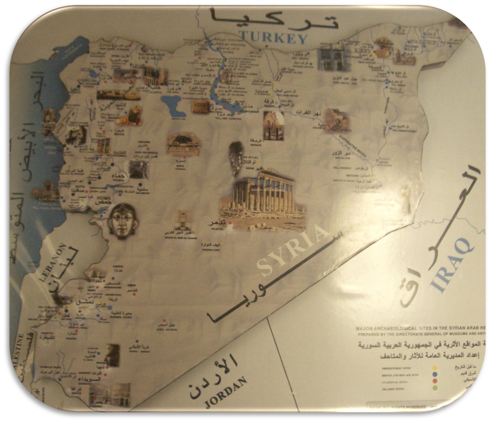 Desde “Semejanzas” nos trasladamos al Medio Oriente, a la actual Siria, que albergó una de las civilizaciones más antiguas datadas. El Imperio semítico (s. XXV adC) ya dejó restos por su territorio. Luego sería fenicia, hebrea, aramea, asiria, babilonia, persa, griega, armenia, romana, nabatea, bizantina, árabe, egipcia, cristiana, otomana, …y francesa.