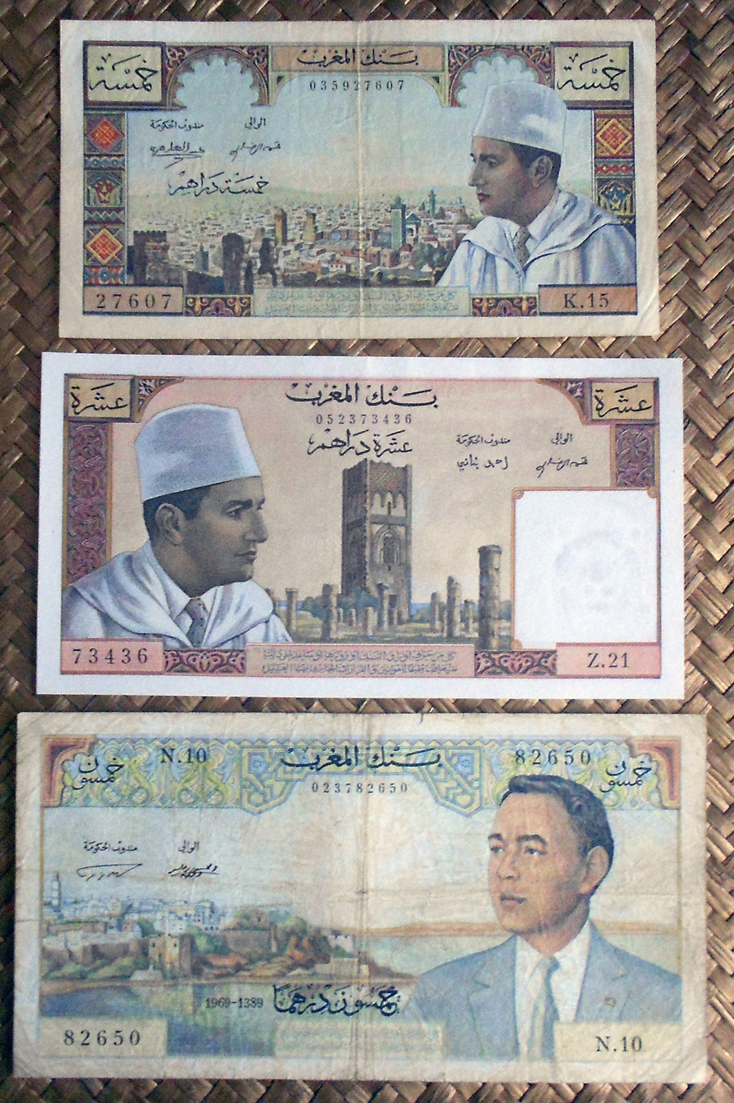 En esta nueva emisión, sus anversos nos iban a mostrar al rey Mohamed V (en los ejemplares de 5 y 10 dirhams) y al rey Hassan II (en el ejemplar de 50 dirhams). Esta seria sería editada por el Banque de France, manteniendo en sus grabados el peculiar estilo artístico del billetario francés de la época.