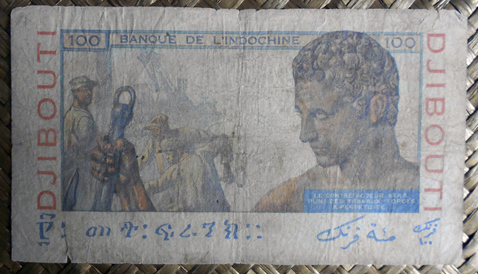 Tras la independencia en 1977, dos años más tarde se creará el Banco Nacional de Djibouti que mantendrá el franco como unidad monetaria, pero con plena soberanía de emisión. Actualizará su billetario, inicialmente rescatando los diseños usados hasta esa fecha y adaptándolos a su nueva realidad. La serie de la que forman parte los billetes que revisamos se mantendría hasta la última década del s. XX.