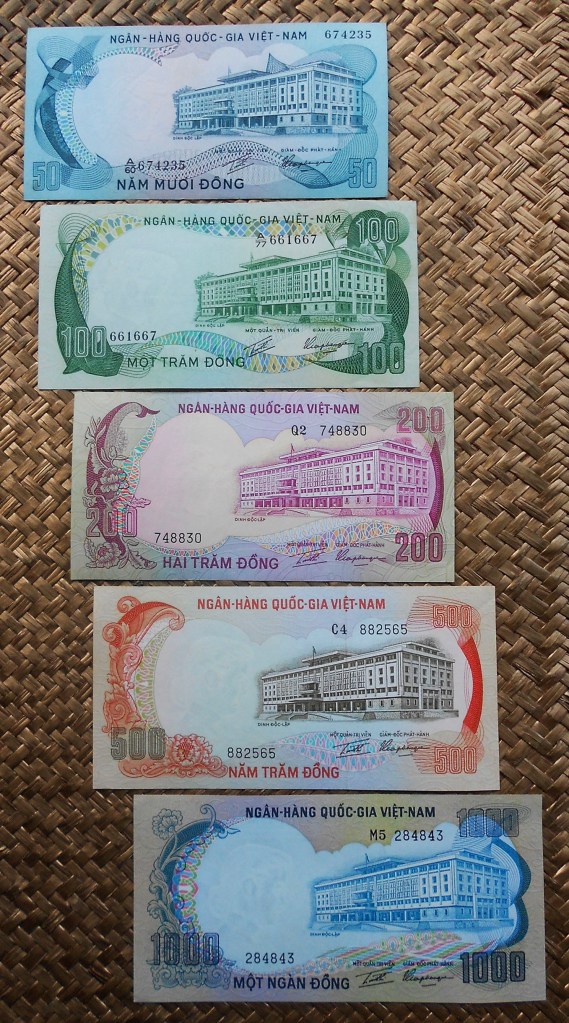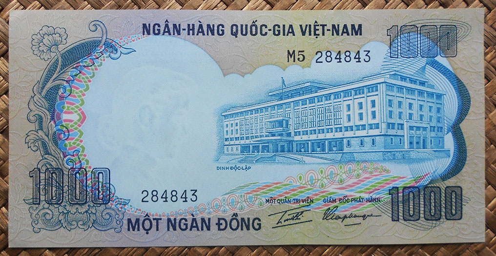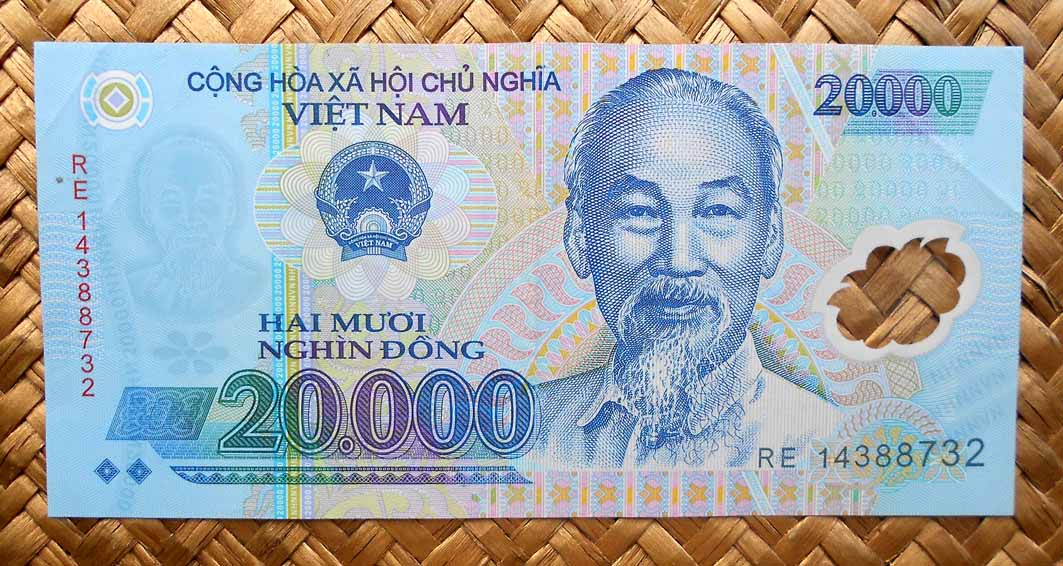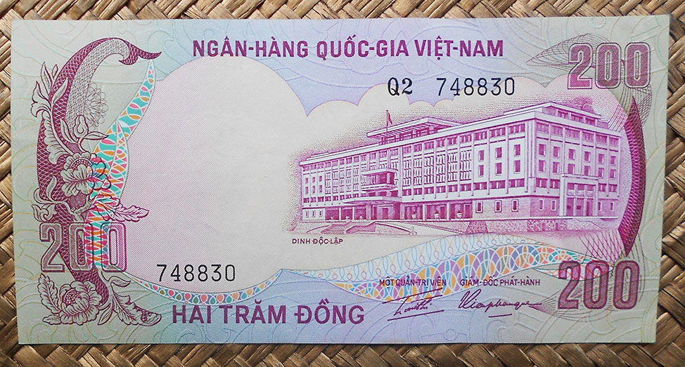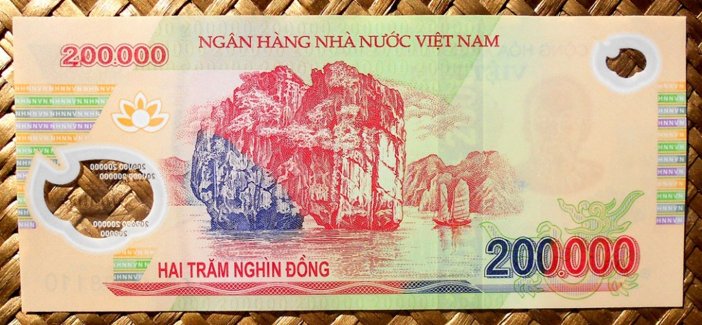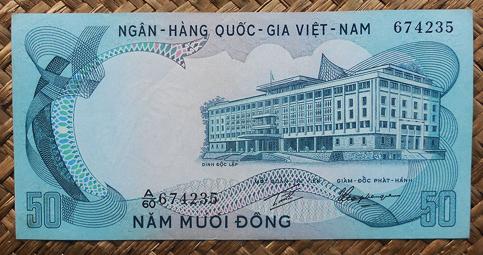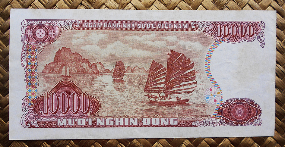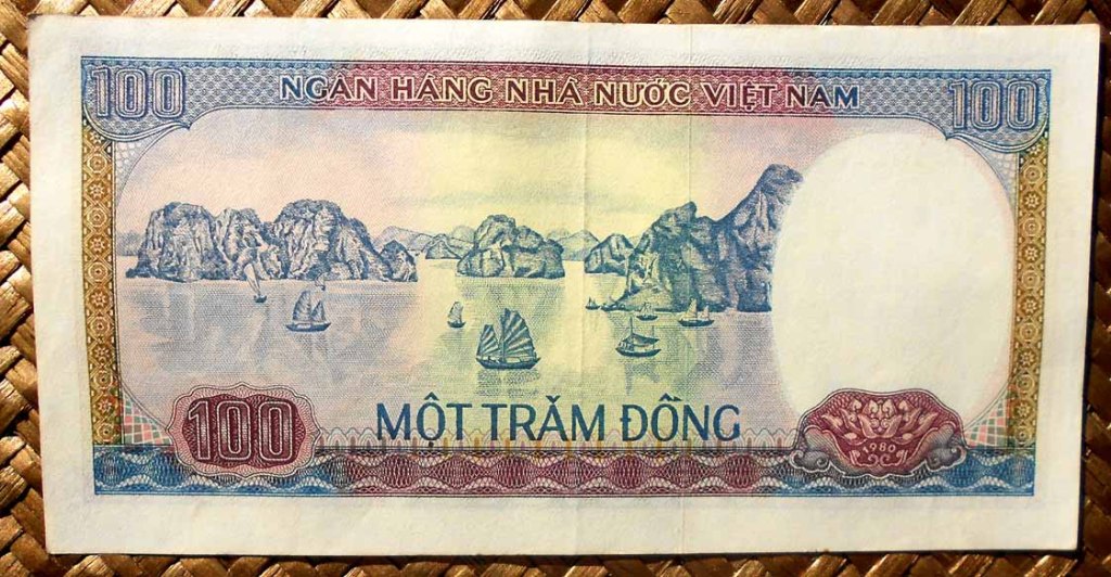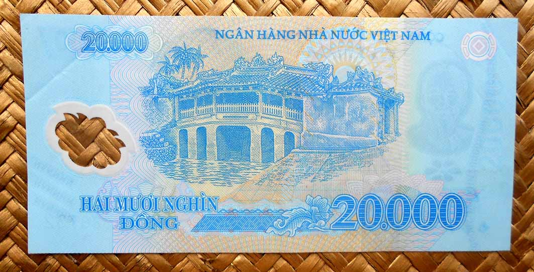 El reverso del ejemplar de Vietnam está presidido por el emperador Bao Dai (o Nguyễn Phúc Vĩnh Thụy 1913-1997), último referente de la dinastía Nguyen, iniciada a comienzos del s. XIX. Acompaña la composición del reverso el grabado de la Tumba del Emperador Khai Dinh, padre de Bao Dai, mandada construir por éste en 1930 en el complejo de la Ciudad Imperial de Hue, Patrimonio de la Humanidad de la UNESCO desde 1993.