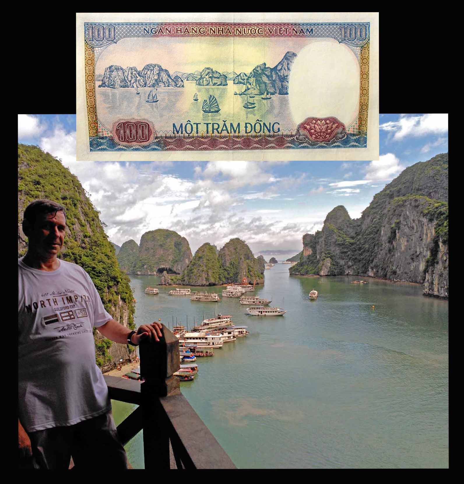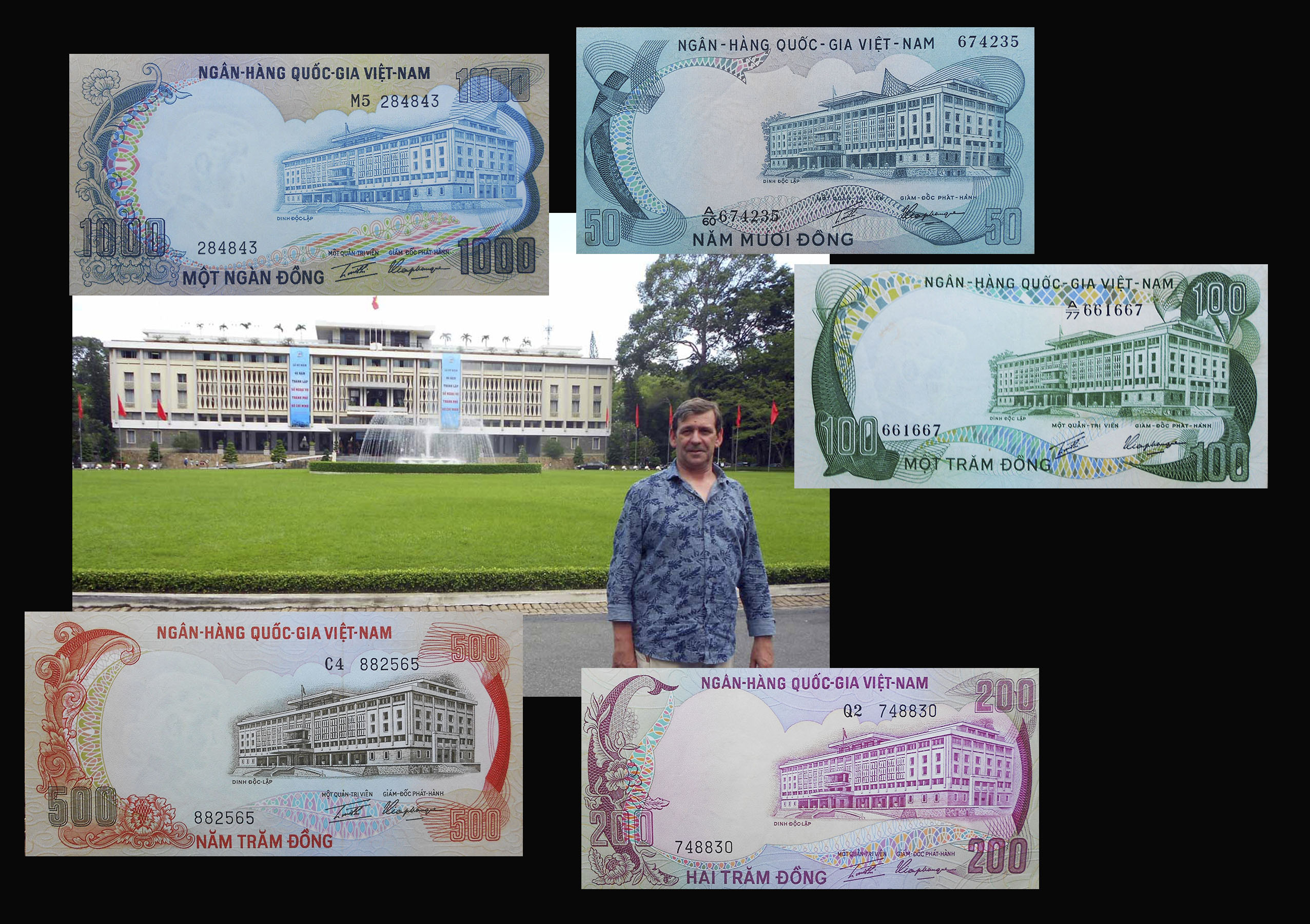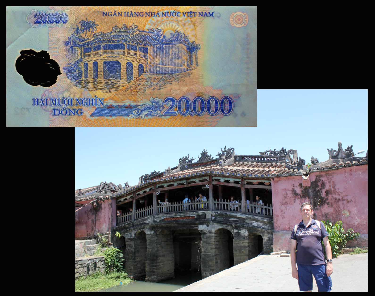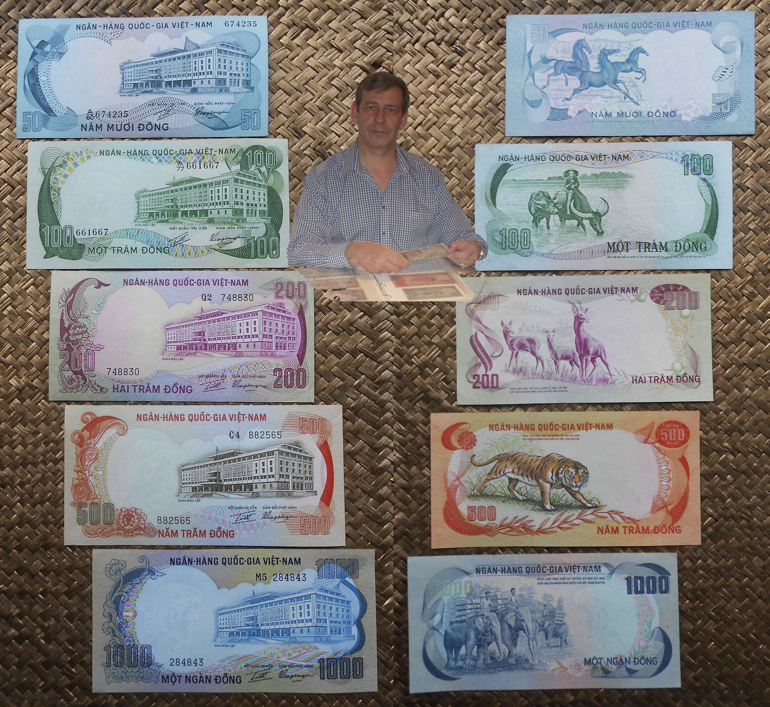 El reverso del ejemplar de Vietnam está presidido por el emperador Bao Dai (o Nguyễn Phúc Vĩnh Thụy 1913-1997), último referente de la dinastía Nguyen, iniciada a comienzos del s. XIX. Acompaña la composición del reverso el grabado de la Tumba del Emperador Khai Dinh, padre de Bao Dai, mandada construir por éste en 1930 en el complejo de la Ciudad Imperial de Hue, Patrimonio de la Humanidad de la UNESCO desde 1993.