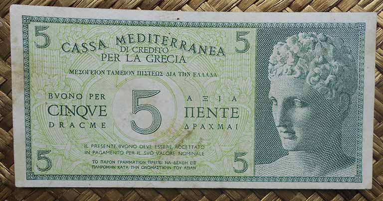 Grecia ocup. italiana WWII Serie dracmas 1941 –Cassa Mediterranea di Credito per la Grecia– anversos