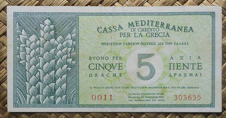 Grecia ocup. italiana WWII Serie dracmas 1941 –Cassa Mediterranea di Credito per la Grecia– reversos