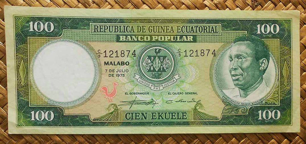 Los primeros pasos de Guinea Ecuatorial como país independiente se dieron en 1968, pero no sería hasta 1975 cuando se cambió la vieja moneda colonial, la peseta guineana, por el nuevo ekuele.
