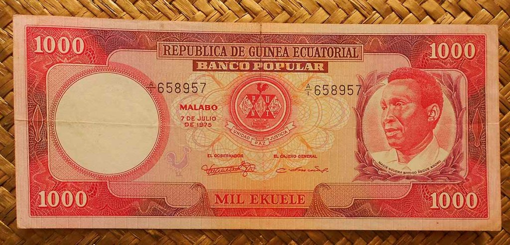 El billete de 1000 ekueles vuelve a mostrar a Macias Nguema, dejando el reverso para el edificio del Banco Central.